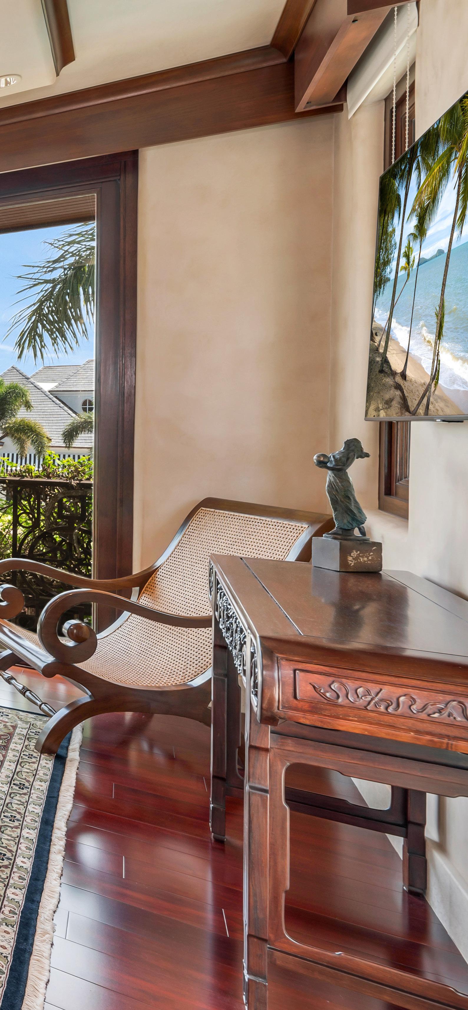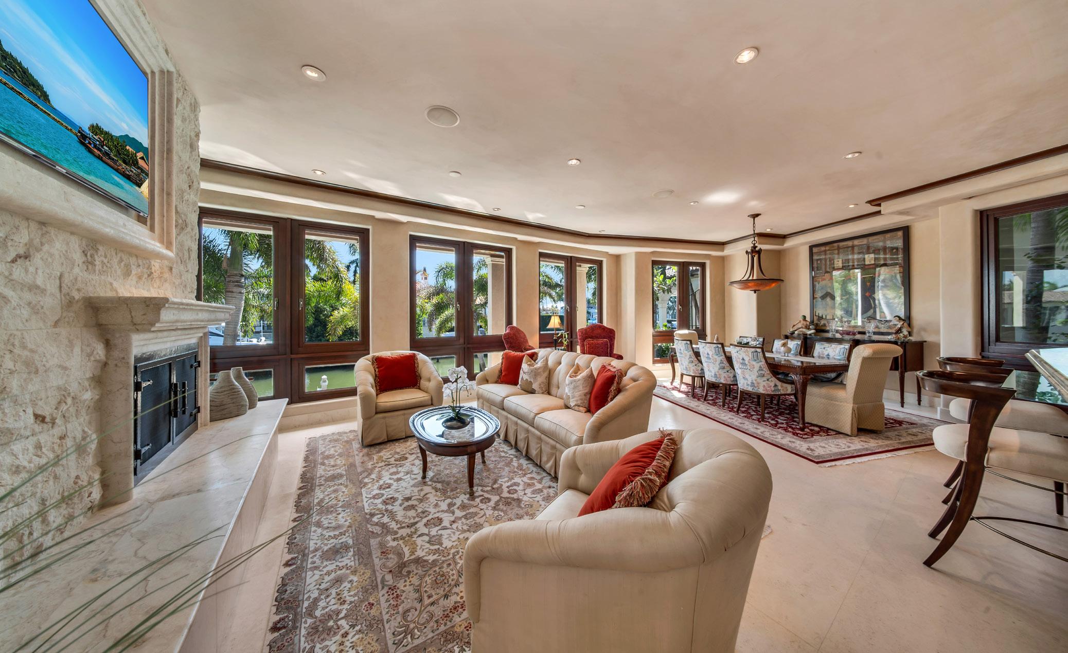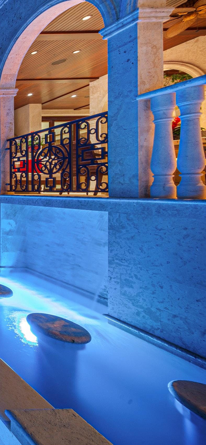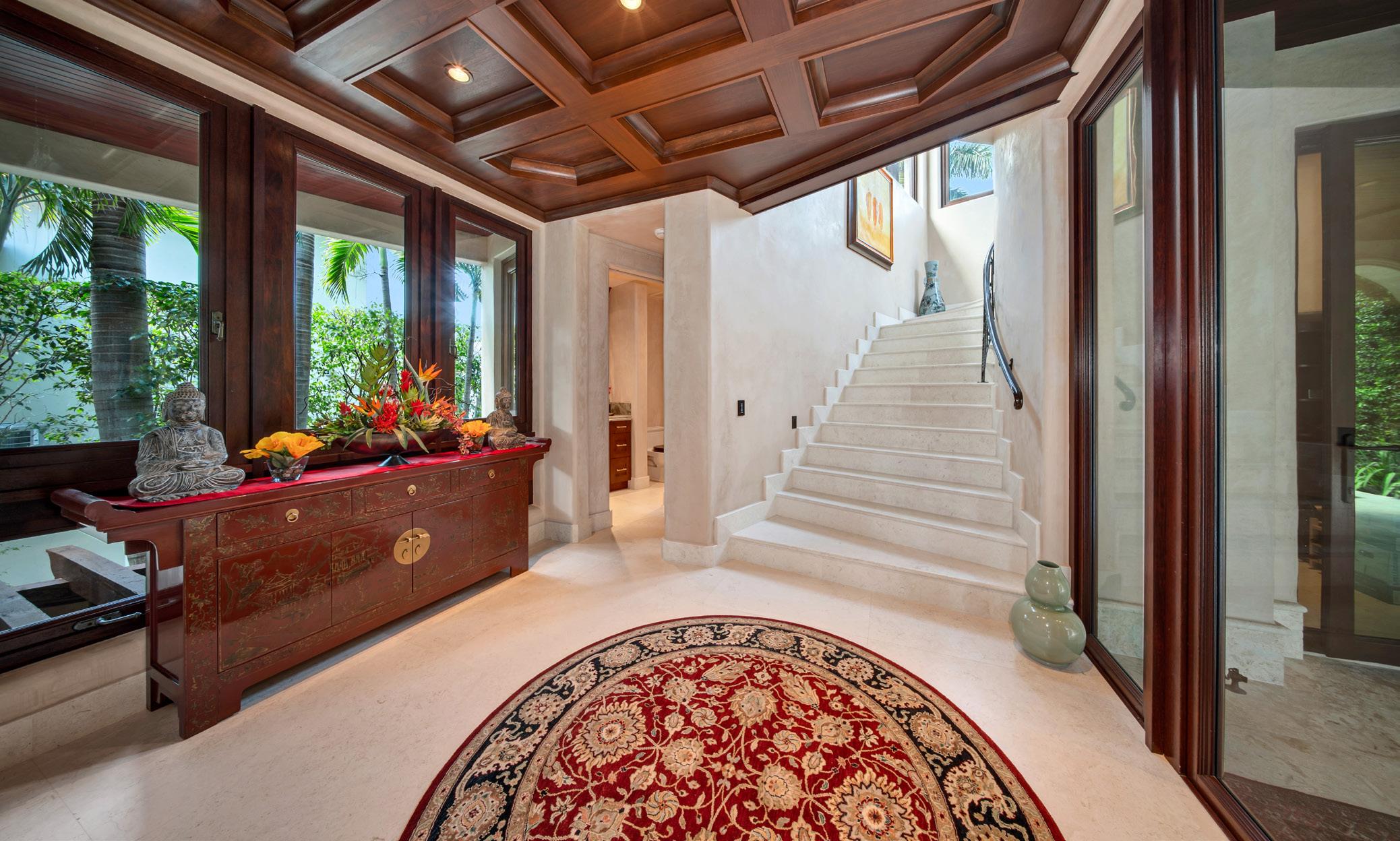 Unparalleled beauty defined in this Asian-Italian inspired courtyard home in Aqualane Shores. Upon entering through an iron gate you are greeted by a flowing water koi pond, exquisite Marmorino venetian plaster walls on the interior and exterior, Luxbaum windows, stone and rosewood floors throughout highlighted by blooming bougainvillea views enjoyed from every angle. Enjoy waterfront living with a 60-foot pool, covered boat slip, and floating dock area; seconds to the bay and direct bridge free access to the Gulf. Ample space for relaxation and entertaining in the large great room dining kitchen area, 5 bedrooms, 5 full baths, and 2 half baths. The second floor holds an additional family room with bar and kitchen area on one side connected by an outdoor terrace sitting area to the master suite on the other. The master bedroom has a private sun terrace, a walk-in closet, a large bathroom with dual marble sinks, soaking tub and steam shower. Experience breathtaking views from the third-level terrace balcony, overlooking Naples Bay and the Gulf of Mexico. Just a 10-minute walk to white sandy beaches, this home offers the ultimate in coastal living. Minutes to 3rd Street South shopping and dining district. This home was designed by Tom Pitchard of Matterlake Designs in NYC and built by Garcia Builders.