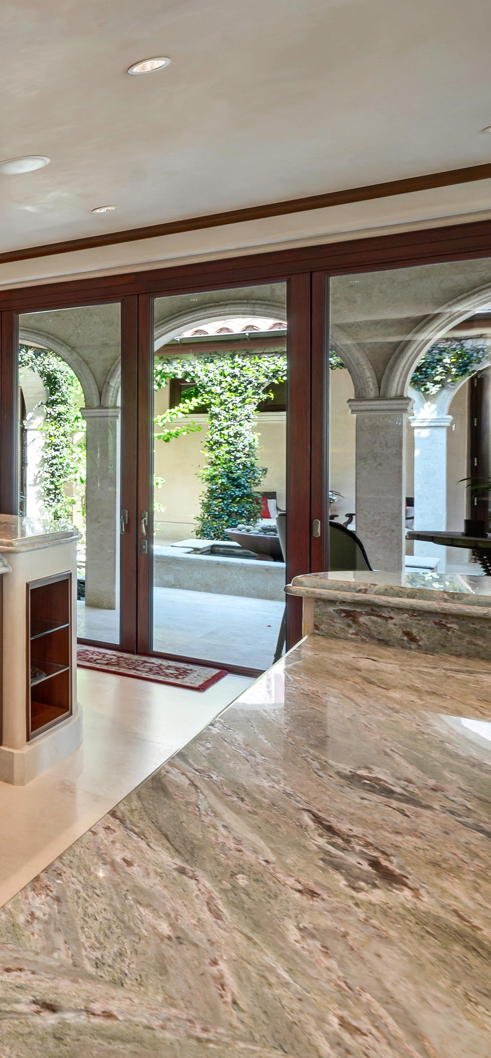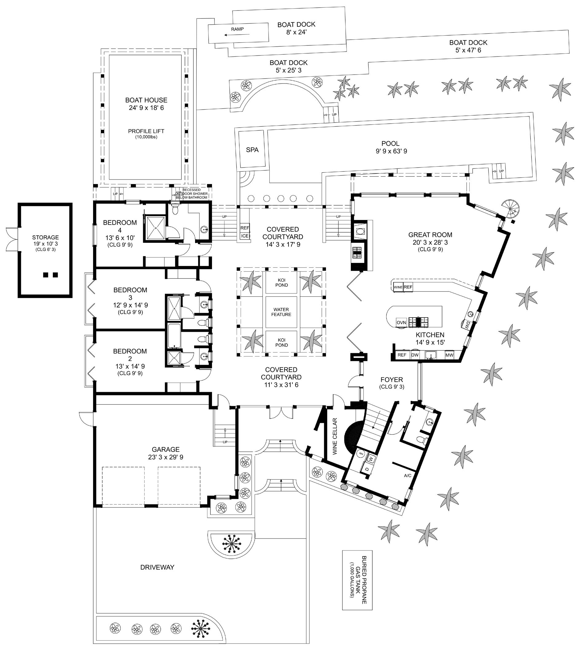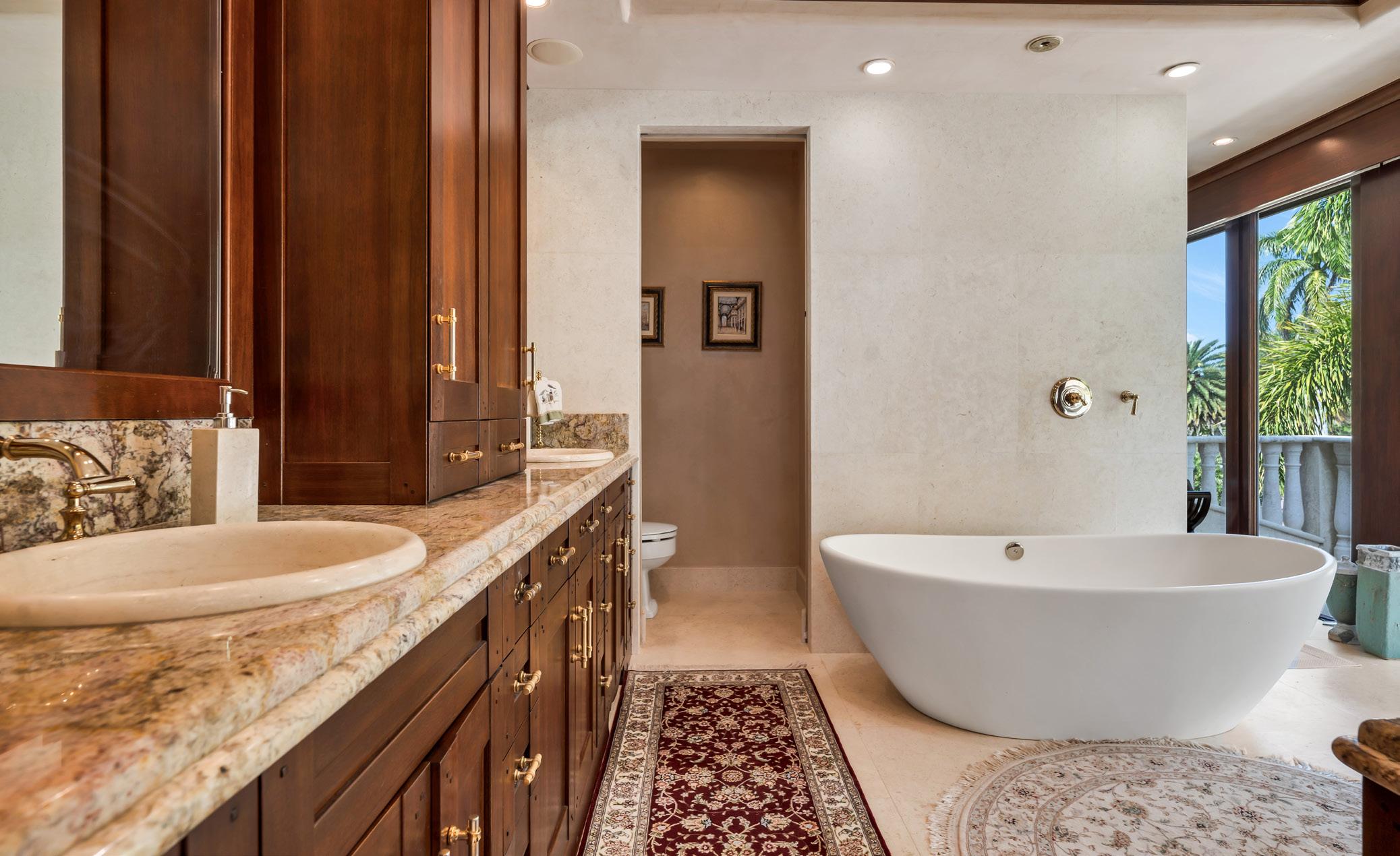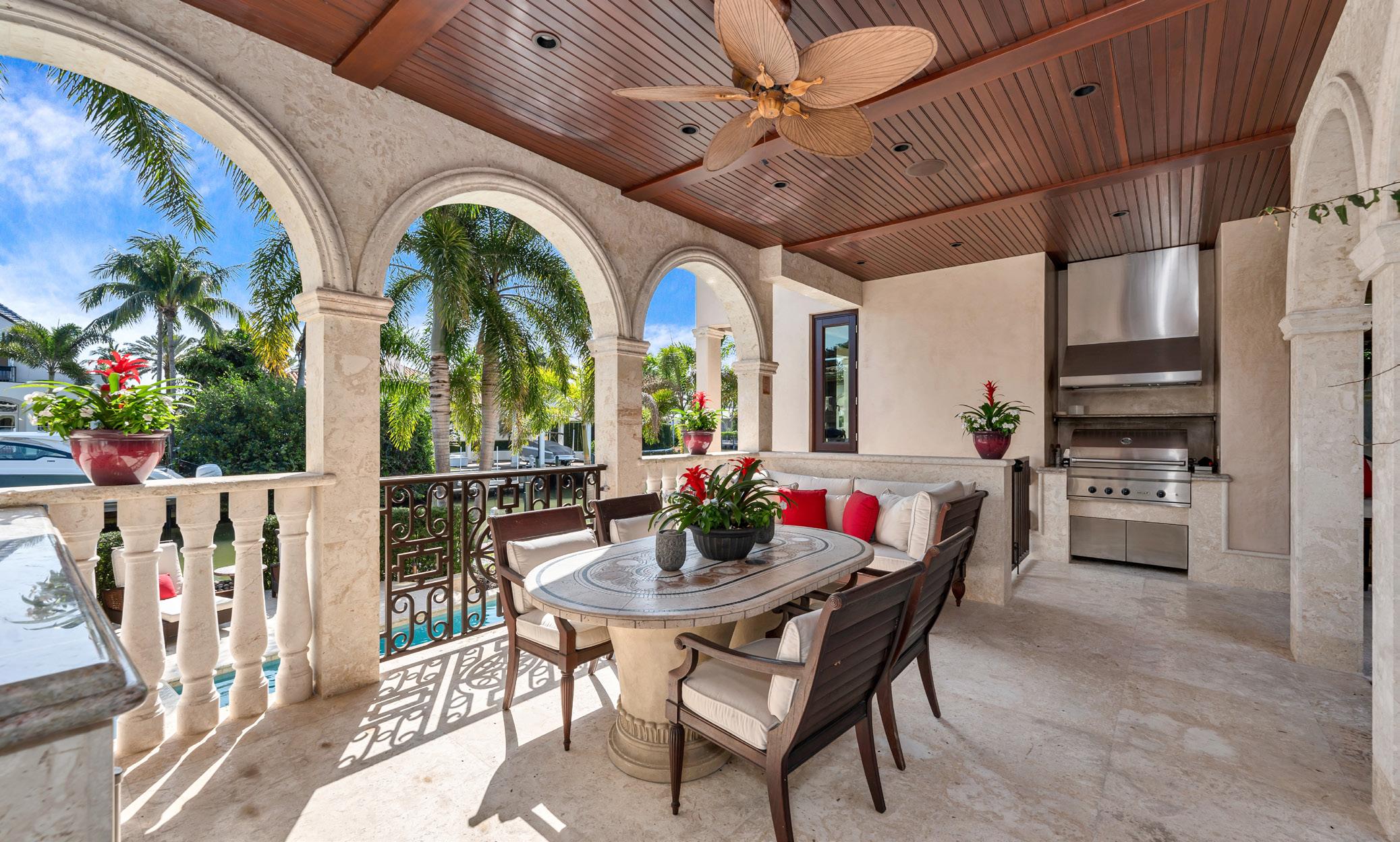 Unparalleled beauty defined in this Asian-Italian inspired courtyard home in Aqualane Shores. Upon entering through an iron gate you are greeted by a flowing water koi pond, exquisite Marmorino venetian plaster walls on the interior and exterior, Luxbaum windows, stone and rosewood floors throughout highlighted by blooming bougainvillea views enjoyed from every angle. Enjoy waterfront living with a 60-foot pool, covered boat slip, and floating dock area; seconds to the bay and direct bridge free access to the Gulf. Ample space for relaxation and entertaining in the large great room dining kitchen area, 5 bedrooms, 5 full baths, and 2 half baths. The second floor holds an additional family room with bar and kitchen area on one side connected by an outdoor terrace sitting area to the master suite on the other. The master bedroom has a private sun terrace, a walk-in closet, a large bathroom with dual marble sinks, soaking tub and steam shower. Experience breathtaking views from the third-level terrace balcony, overlooking Naples Bay and the Gulf of Mexico. Just a 10-minute walk to white sandy beaches, this home offers the ultimate in coastal living. Minutes to 3rd Street South shopping and dining district. This home was designed by Tom Pitchard of Matterlake Designs in NYC and built by Garcia Builders.
