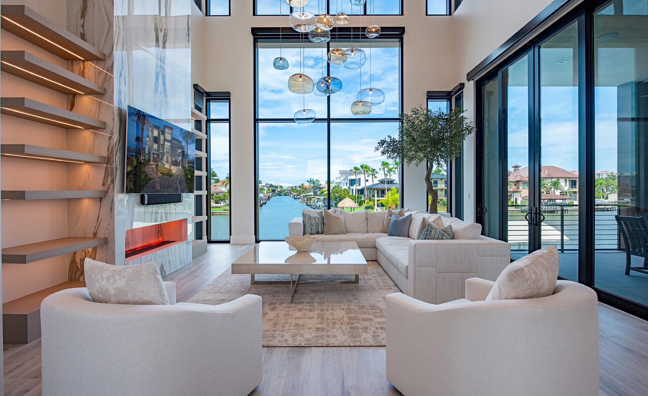 Introducing a rare offering in one of Naples’ premier boating communities—this home sets a new benchmark for luxury coastal living. Perfectly positioned at the tip of a quiet cul-de-sac in the soughtafter Conners enclave of Vanderbilt Beach, this architectural gem sits on a pie-shaped lot with wide, unobstructed canal views and coveted western exposure—ideal for savoring Naples’ iconic sunsets. Boasting direct Gulf access and an expansive waterfront presence, this contemporary showplace blends cutting-edge design with natural materials, resulting in a timeless yet modern aesthetic. Floor-to-ceiling glass walls at the entry fill the home with natural light while framing long-water vistas that serve as a daily backdrop. The thoughtfully designed floor plan includes multiple en suite bedrooms, including two primary suites, one of which features a private balcony with sweeping water views. The chef’s kitchen is both stylish and functional, equipped with a spacious pantry, dedicated wine room, and a fully outfitted service kitchen—ideal for entertaining at any scale. The grand living area merges effortlessly with the outdoors via retractable glass walls, opening to a resort-style pool deck, complete with an outdoor kitchen, lanai space, and elegant fire features. The lower level offers a rare 5-car garage, ample storage, and an elevator, ensuring convenience meets sophisticated living. This is more than a home—it’s a waterfront lifestyle experience, meticulously crafted for those who demand the finest.