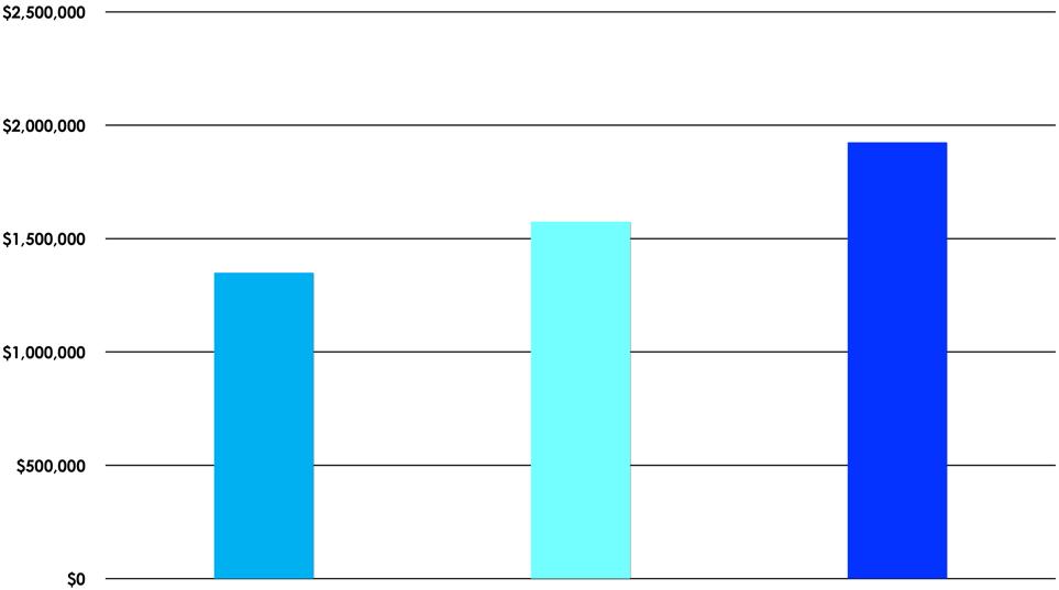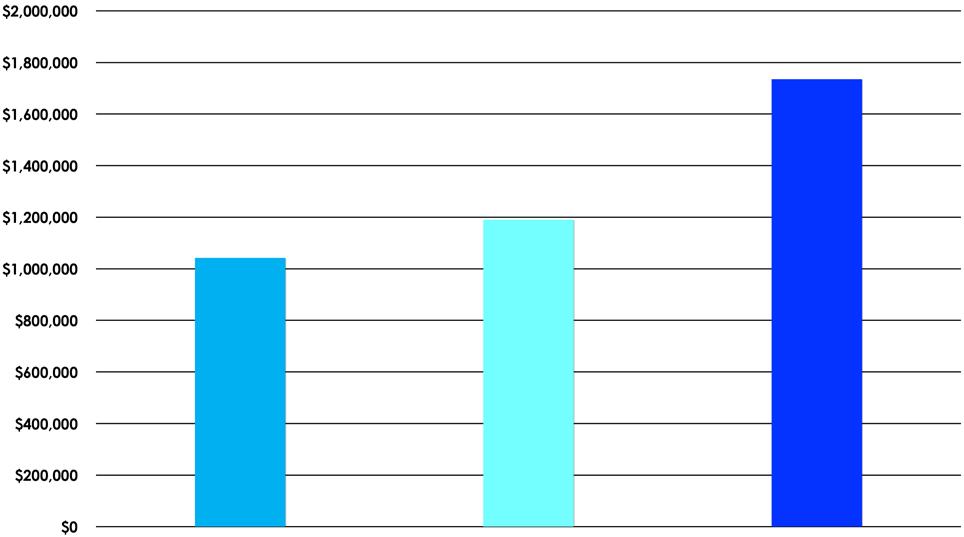 HIGH-RISE CONDOMINIUM SALES VOLUME 2020 $4,169,000 2021 $9,521,000 2022 $10,410,000 HIGH-RISE CONDOMINIUM NUMBER OF CLOSED SALES 2020 4 2021 8 2022 6 HIGH-RISE CONDOMINIUM AVERAGE CLOSED SALES 2020 $1,042,2500 2021 $1,190,125 2022 $1,735,000 HIGH-RISE CONDOMINIUM HIGHEST SALE 2020 $1,350,000 2021 $1,575,000 2022 $1,925,000