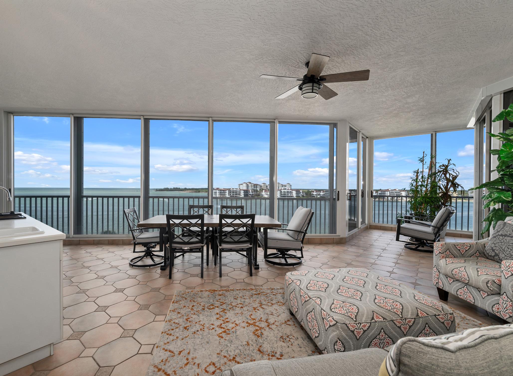 One of the most desirable and sought after plans and location in Hideaway Beach. This beautiful, four bedroom three-and-one half bath spacious residence has three expansive terraces with gorgeous views of the Gulf of Mexico, Marco River, Collier Bay and the Marco Island skyline. The Monaco floor plan faces northeastern from the front terraces and southwest from the back terraces. Enjoy the endless entertainment on the water from the aquatic wildlife, area birds, and the parade of boats. This spacious, light and bright condominium lives like a home with over 4,000 air-conditioned space. Live the life you imagined at Hideaway Beach. Hideaway Beach is an esteemed guard-gated community set on 300 lush, beautifully maintained tropical acres and gently sprinkled with homes, villas, beach cottages and condominiums set adjacent to two miles of stunning beach. Hideaway Beach Club is amenity rich with restaurants, a bar, a large community pool in addition to the condominium building pool, a full sports complex with a 9-hole golf course, tennis courts, pro shop, and gym. Live your beach dream at this incredible property.