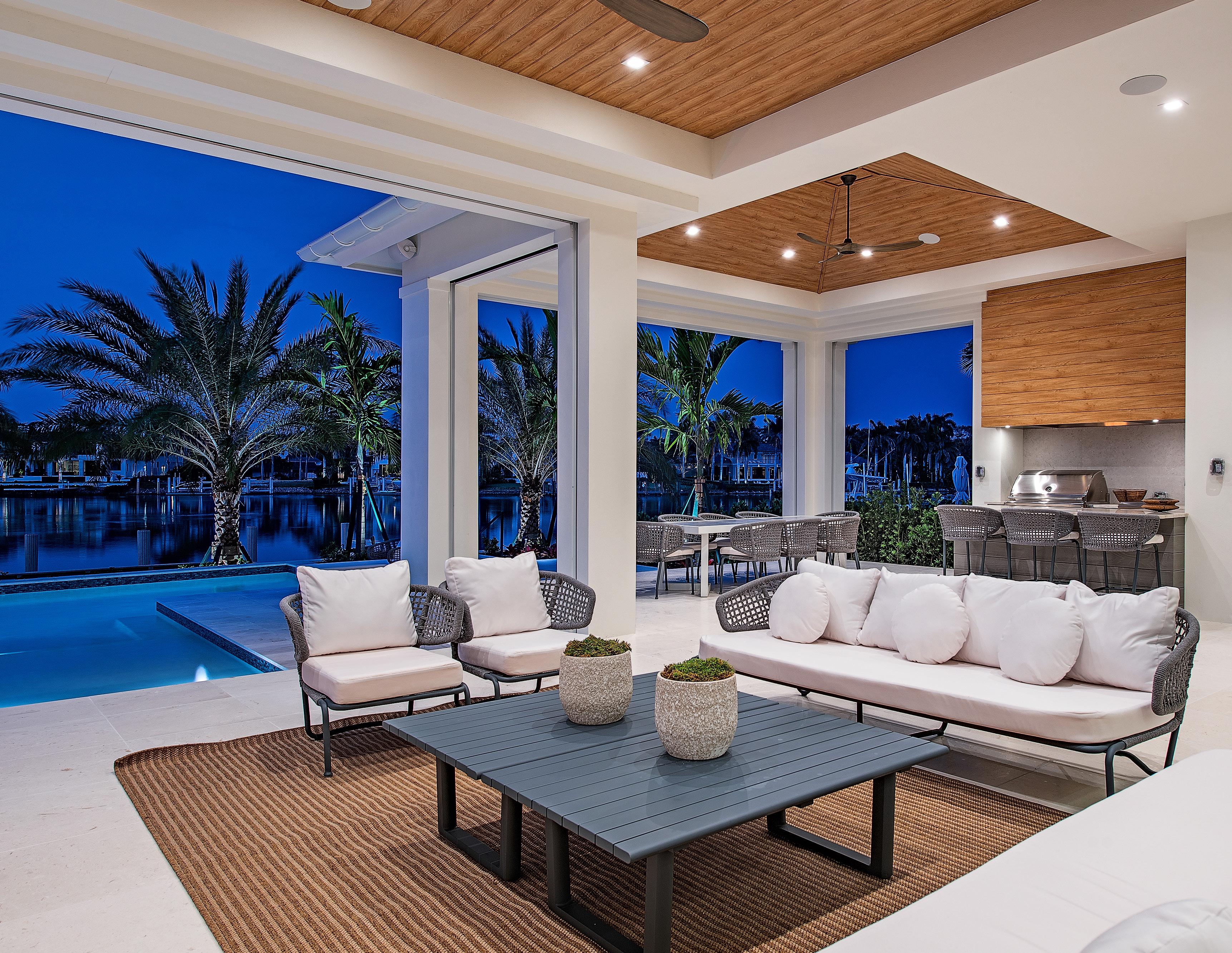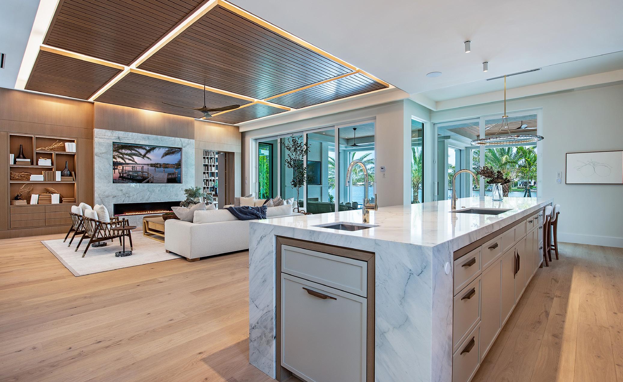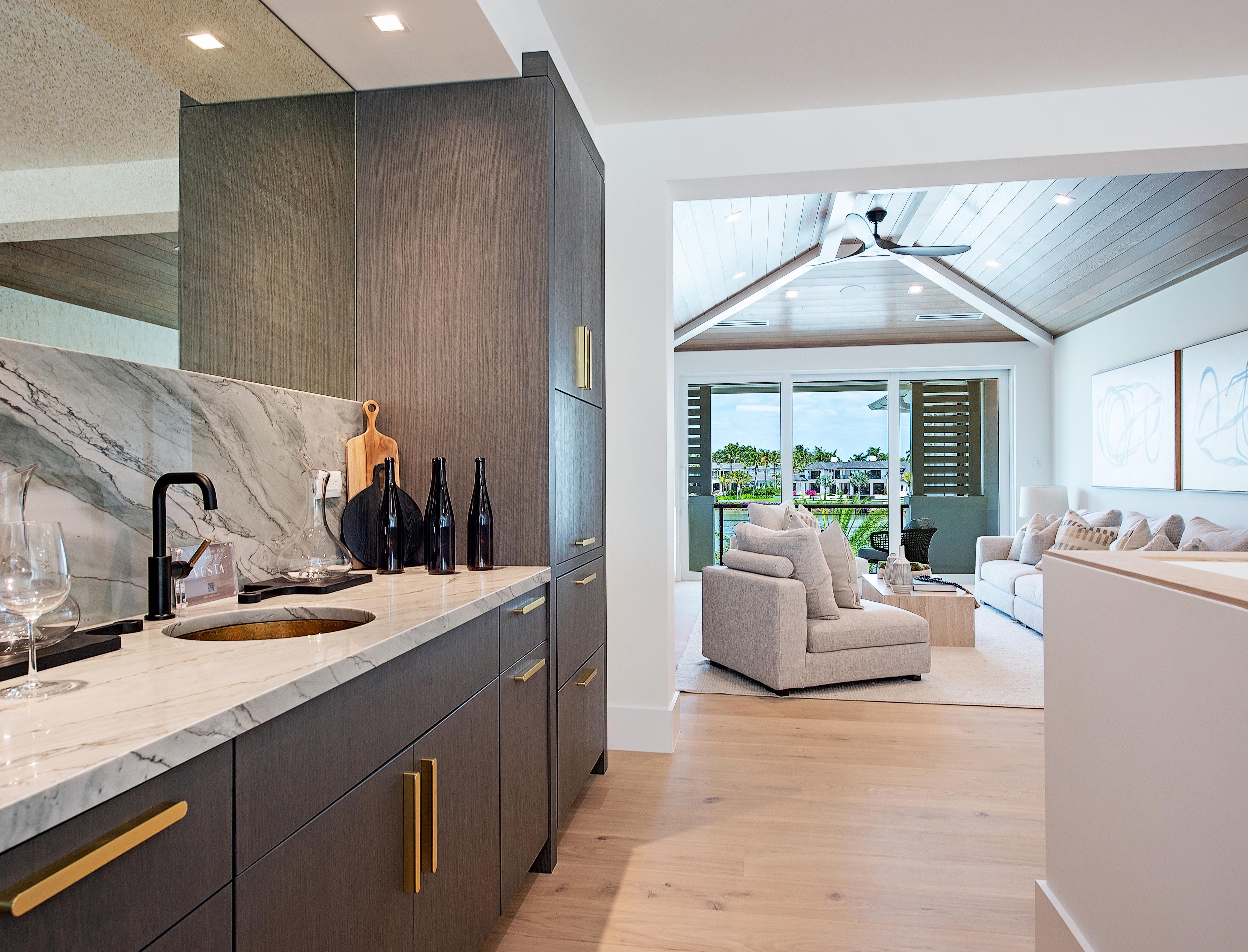 Perfectly positioned on the wide waters of Treasure Cove, this newly constructed custom residence showcases breathtaking views. Designed by Stofft Cooney Architects, masterfully built by Waterside Builders, Inc., and elegantly appointed by Jeffrey Fisher Home, every detail has been thoughtfully curated. The home embraces a clean, contemporary aesthetic with the finest finishes and selections. A warm palette of natural woods and cool stone textures creates a sophisticated yet inviting backdrop for splashes of color. Top-of-the-line Wolf and Sub-Zero appliances highlight the well-appointed gourmet kitchen and prep kitchen, and an expansive island serves as a perfect gathering space. The spacious great room flows seamlessly to the covered outdoor living areas, where the sweeping views of Treasure Cove take center stage. With five bedrooms, including a luxurious VIP suite on the second level, six full baths, and two half baths, the home offers tremendous space for family and guests. Additional features include a versatile club room or office, an upstairs lounge, and a spacious 4-car garage ideal for automotive enthusiasts. Immediate eligibility for Port Royal Club membership completes this exceptional offering.