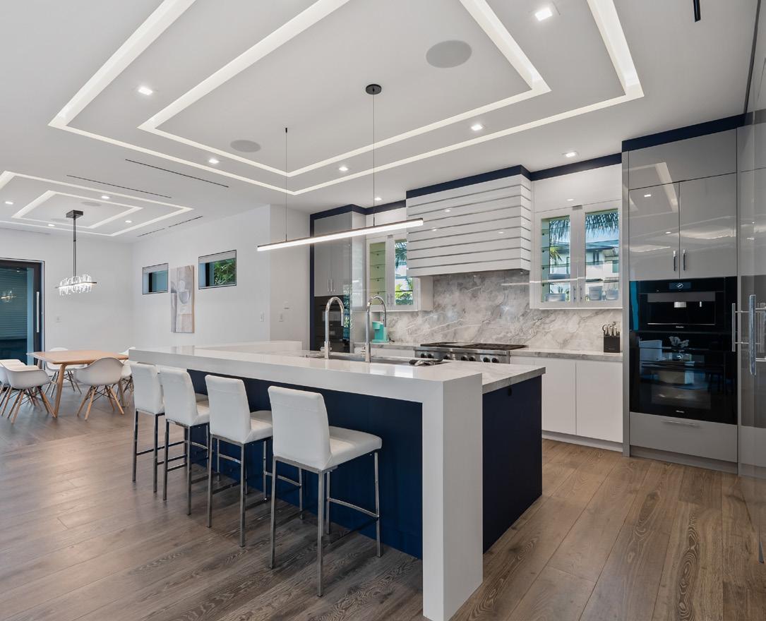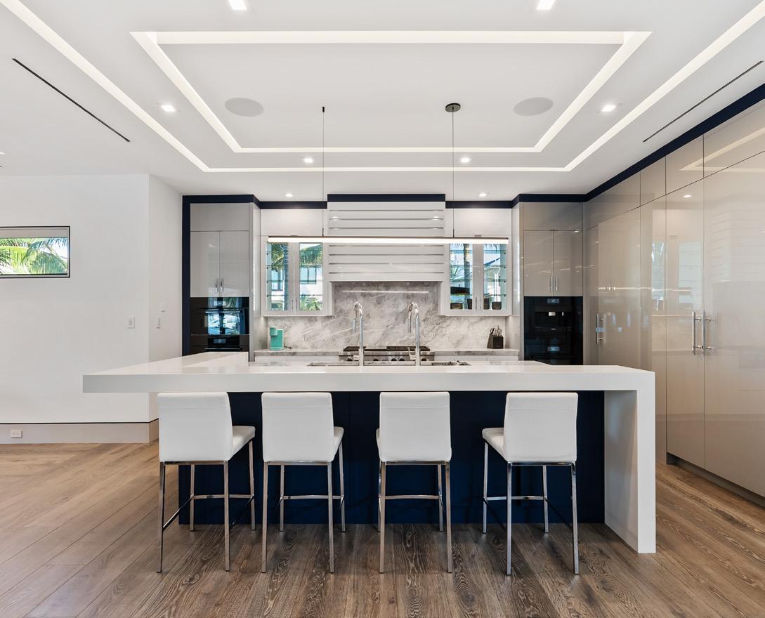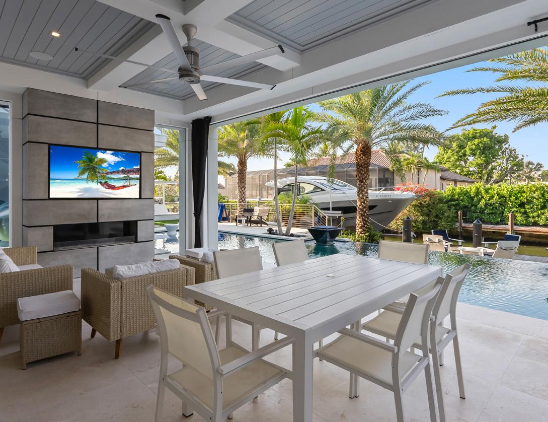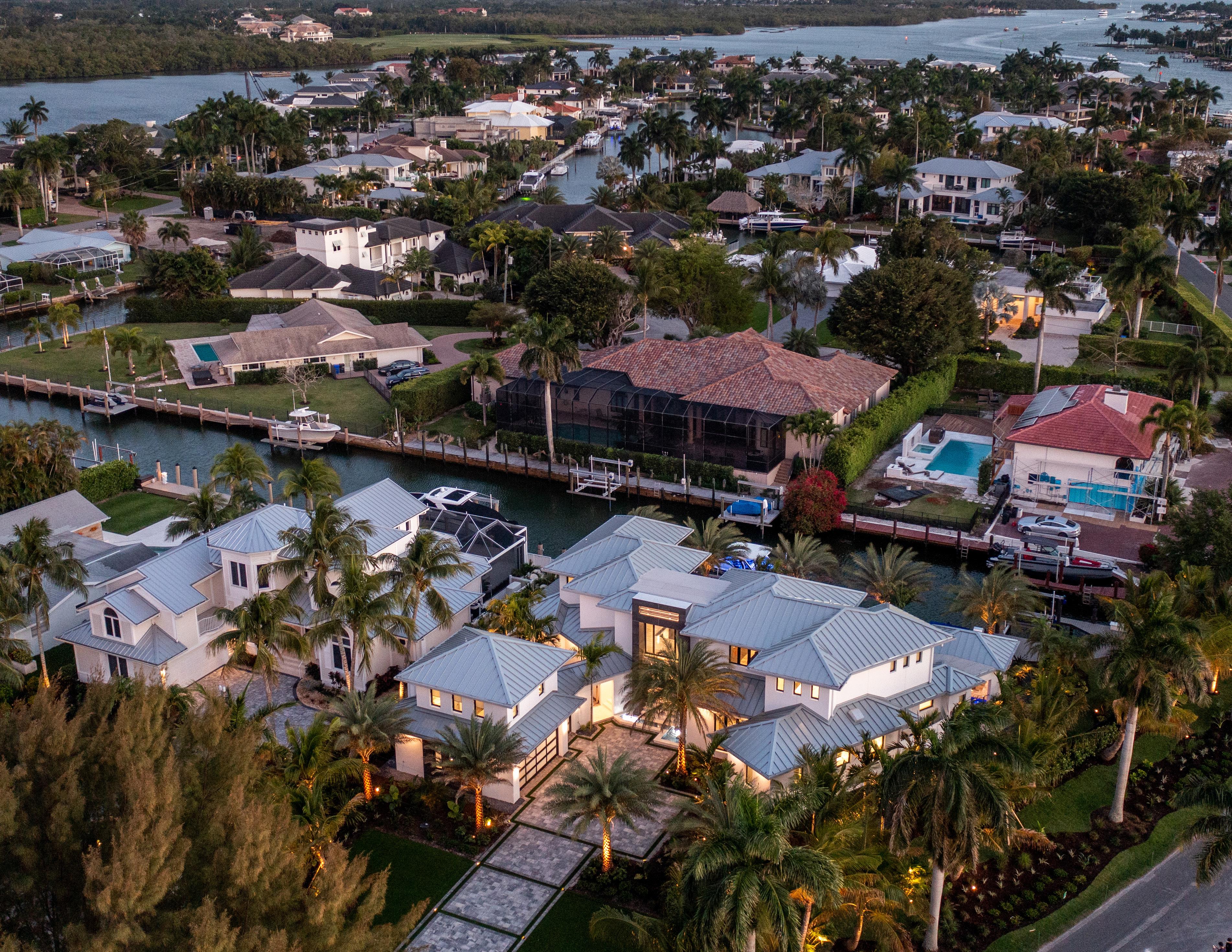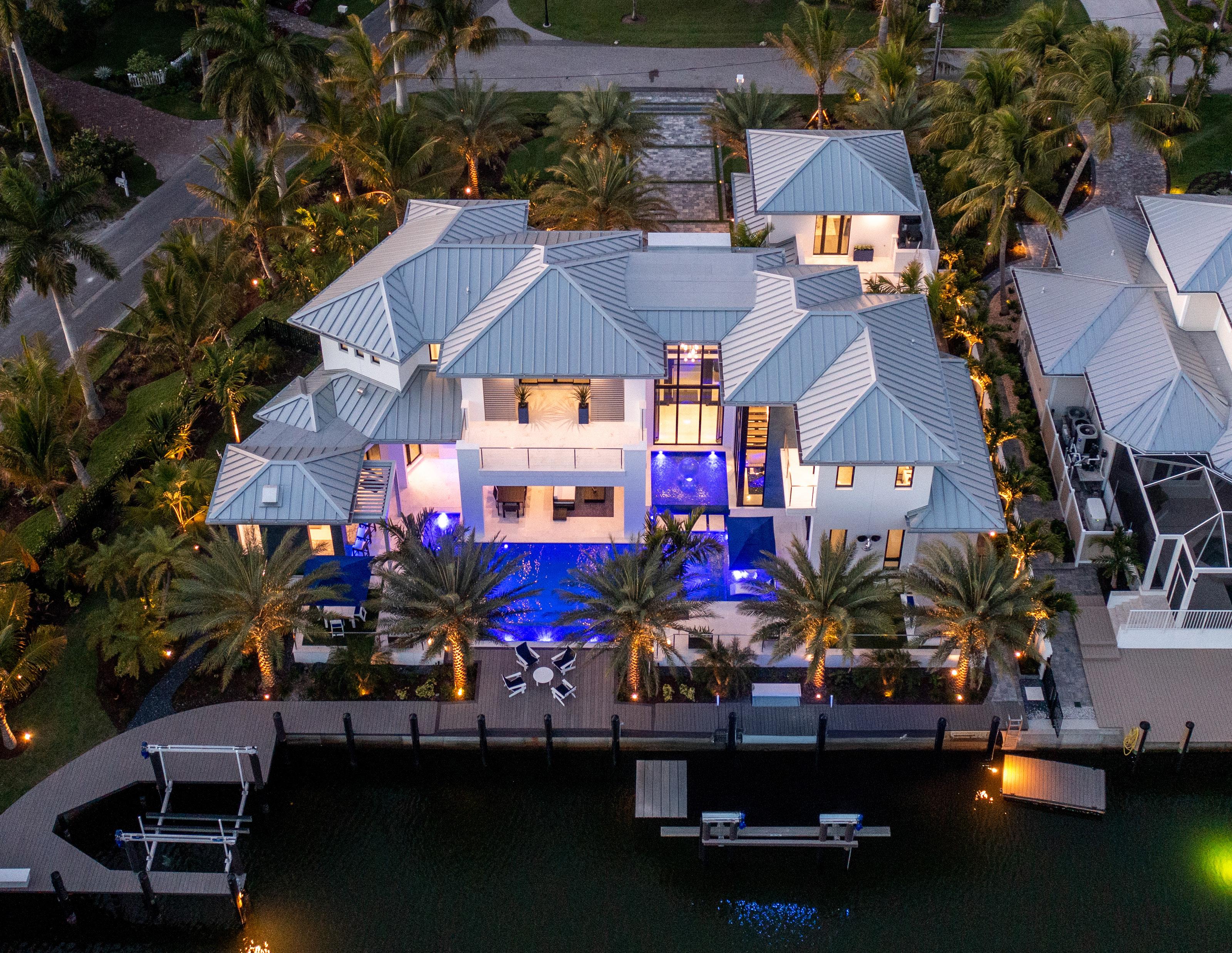 Experience refined waterfront living with this exceptional Royal Harbor estate, offering 155 feet of direct Gulf access on an oversized corner. The 4 bedroom, 6 bath residence comes fully furnished, blending timeless elegance with modern comforts. Marble and wood flooring flow throughout, while the chef’s kitchen boasts Wolf and Sub-Zero appliances, complemented by a separate service kitchen. A private guest suite, with its own entrance, half kitchen, and alarm system, offers ultimate flexibility for family or visitors. Technology and convenience abound with smart home integration, including Lutron lighting, Elan control, automated window coverings, a glass elevator, and a comprehensive security system. Designed for the boating enthusiast, the home features two lifts accommodating vessels up to 24,000 lbs. and a Trex dock. Outdoor living is elevated with a resort-style negative-edge pool with spa and slide, an all-season kitchen with fireplace, and over 80 landscape lights that create dramatic evening ambiance. Just minutes from Naples’ world-class dining, shopping, and beaches, this estate delivers the pinnacle of luxury waterfront living.
