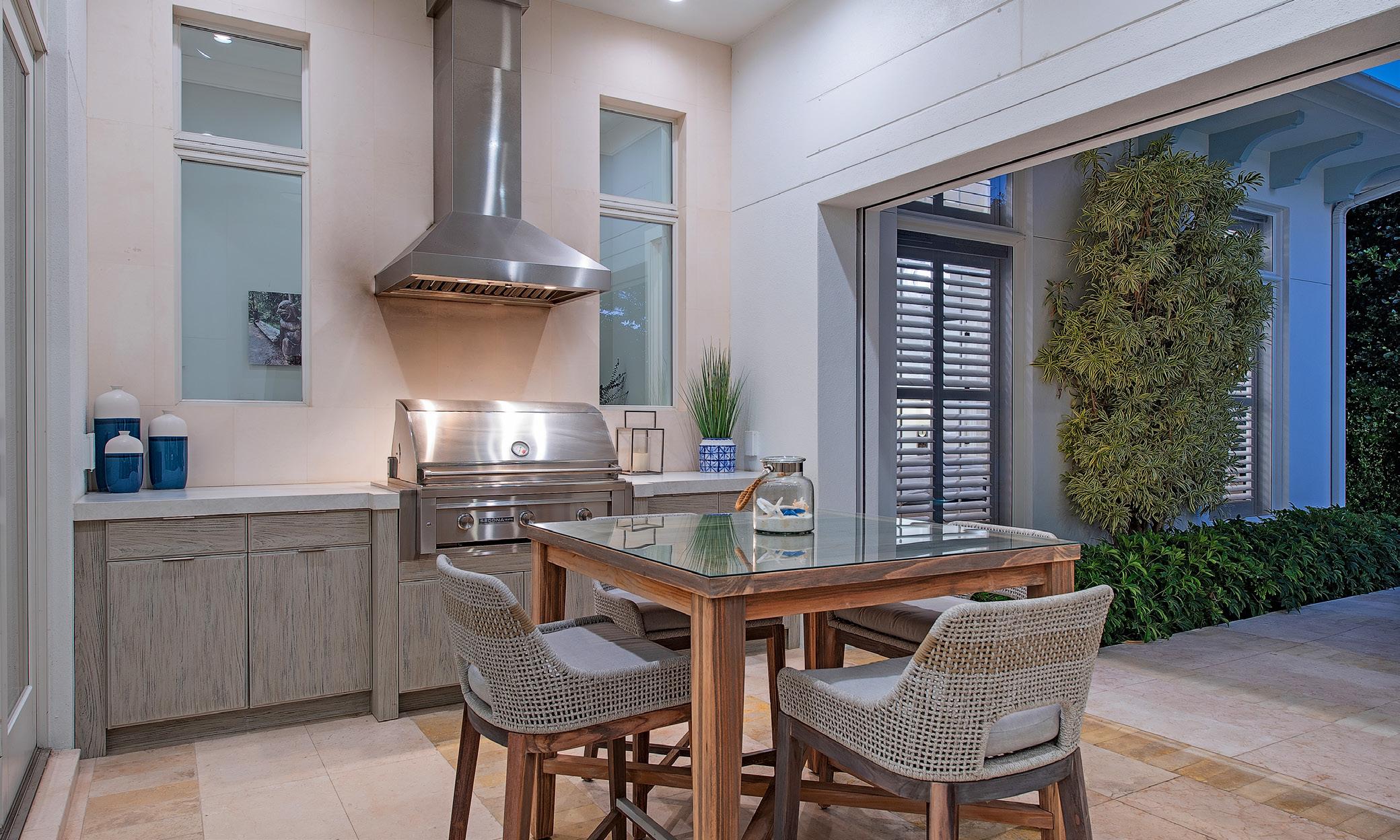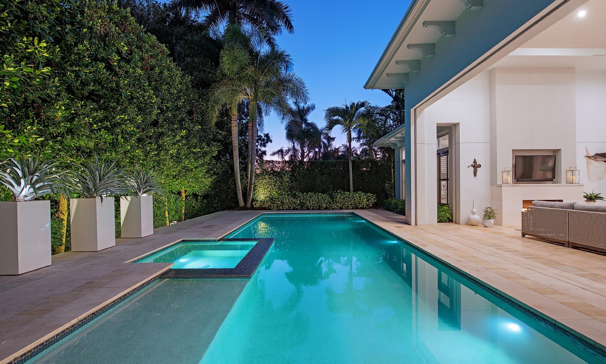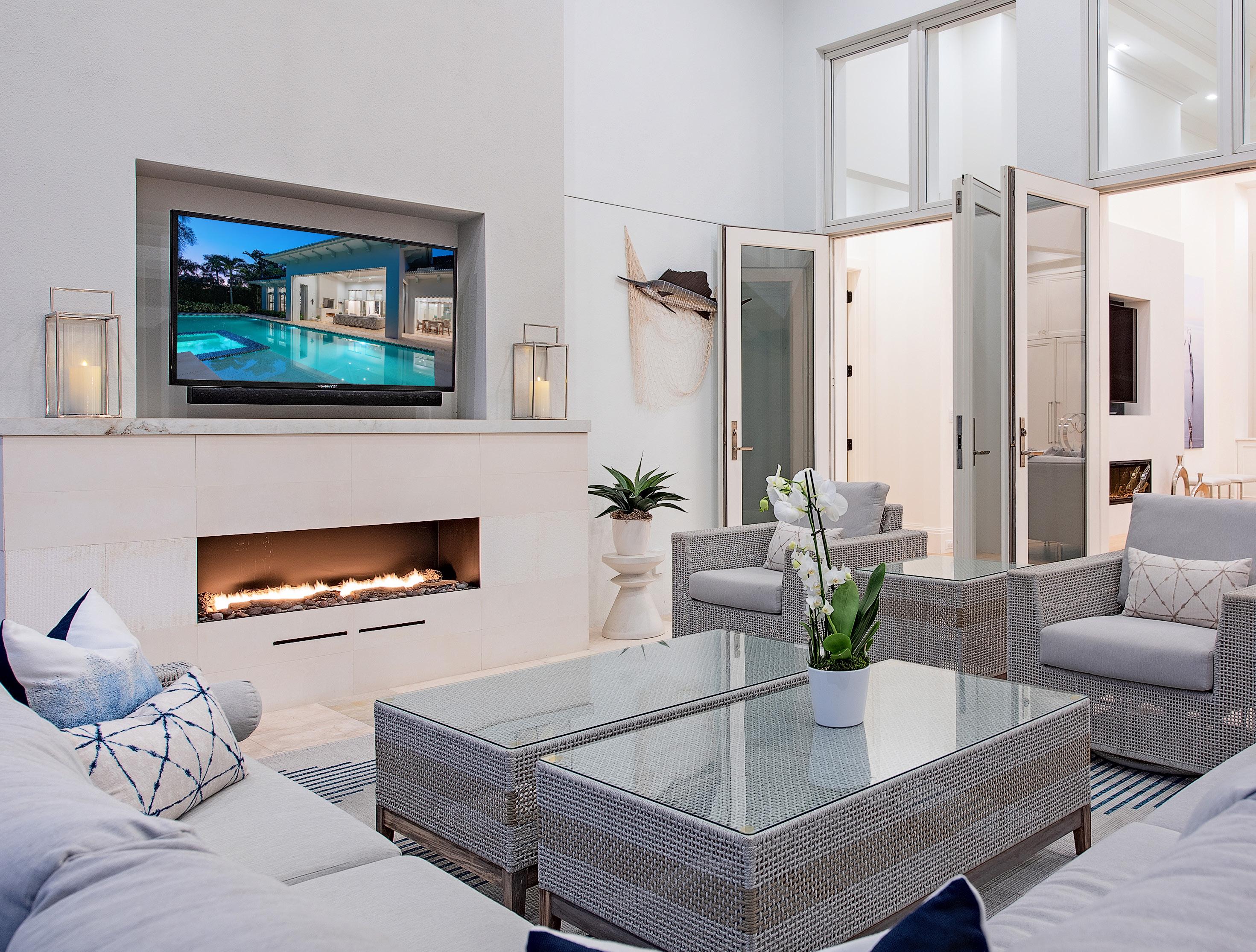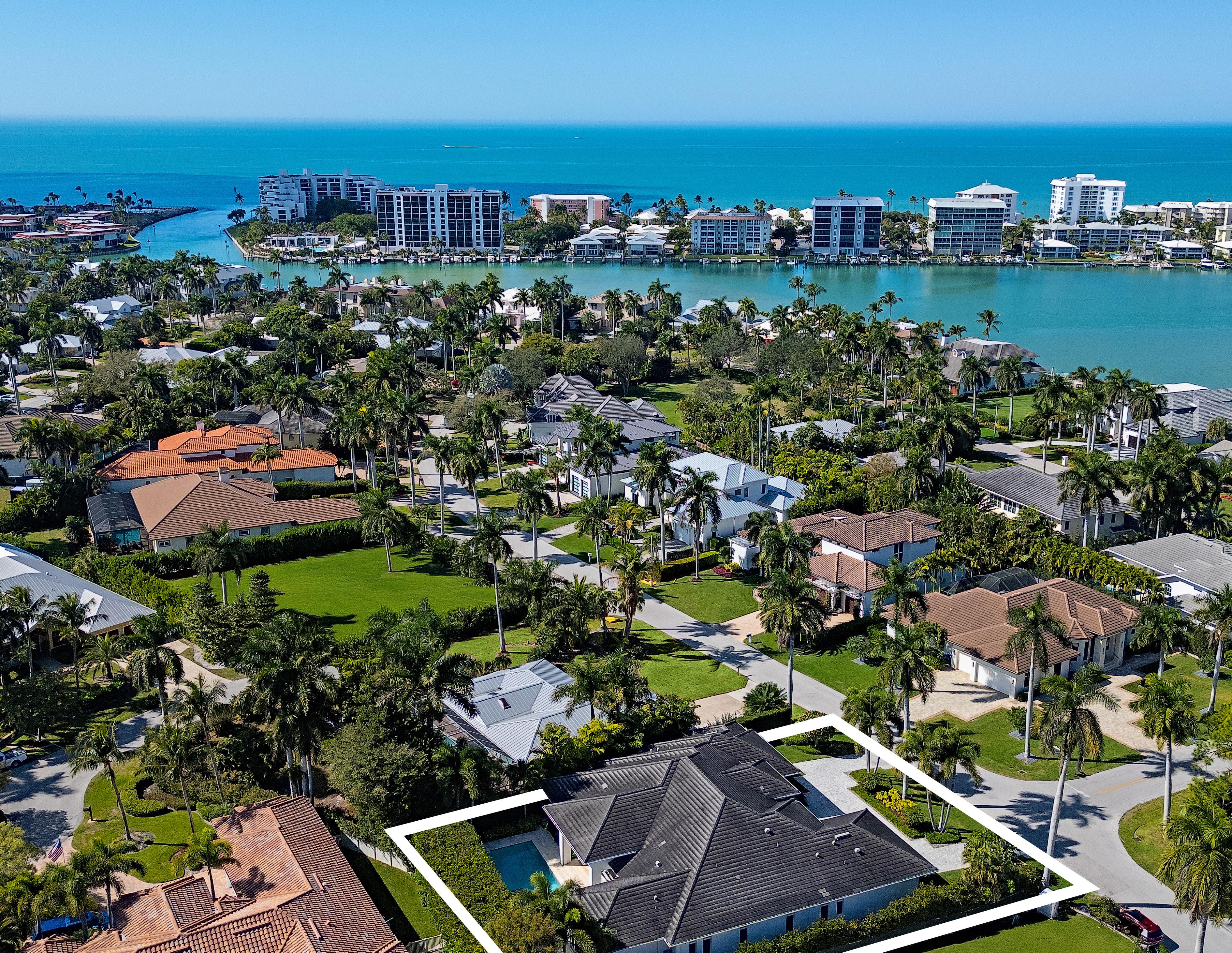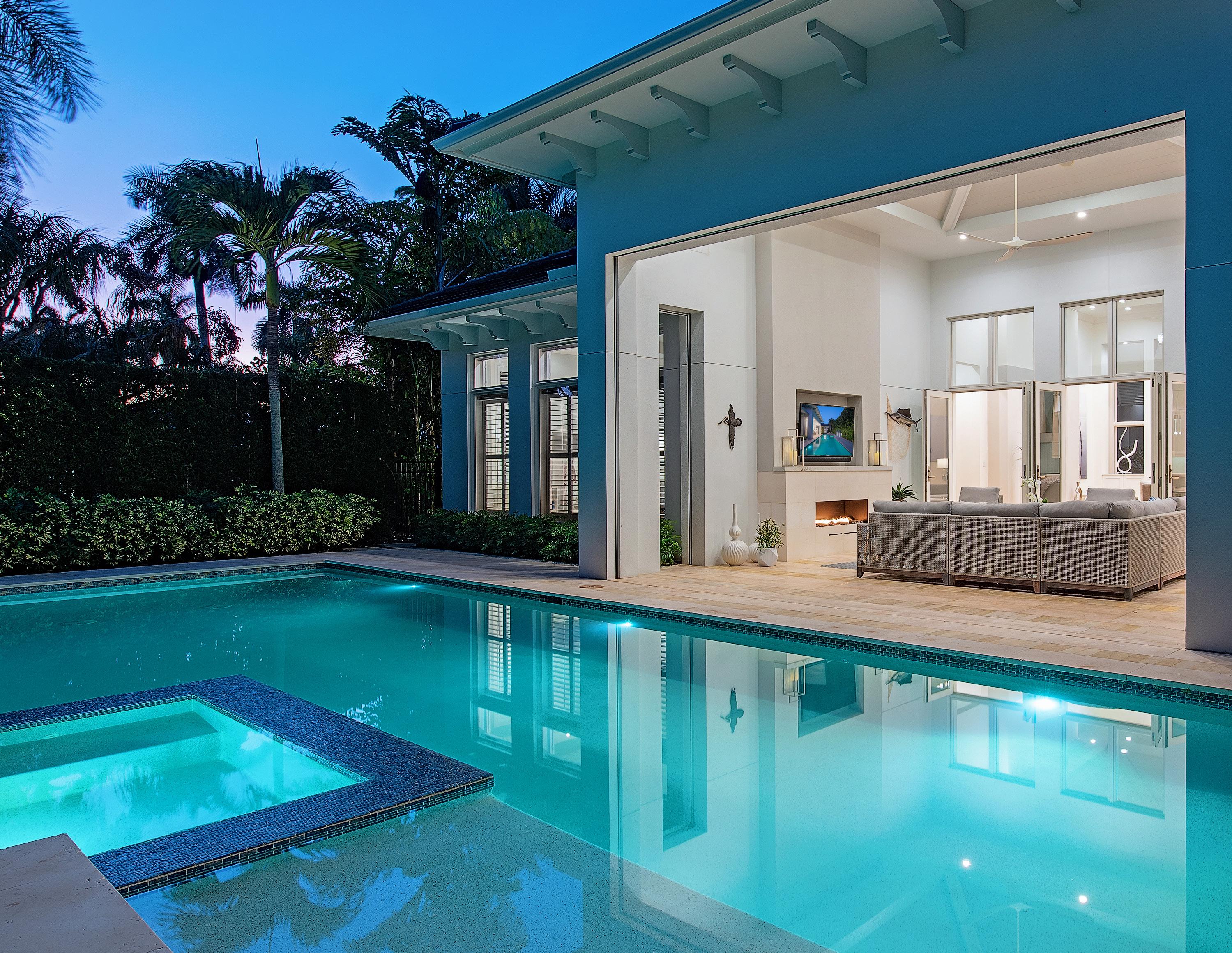 This beautiful home located west of Crayton Road features preferred southern exposure for sun on the pool and is a very short distance to the Moorings private beach and the Moorings Country Club. Professionally designed and furnished by Koastal Design Group in a contemporary beach style, the residence offers effortless living in a comfortable setting. Highlights include five ensuite bedrooms, six bathrooms, and a large, covered lanai that spills out onto the expansive pool deck. A wonderful gourmet kitchen features a gas cooktop, two dishwashers, two wine coolers, refrigerated drawers, and a butler’s pantry, with a breakfast room and large island. A double front door entry opens to a living area with high vaulted ceilings and pocketing glass sliders that fill the space with natural light. The covered lanai is thoughtfully appointed with a summer kitchen and fireplace and extends to the heated saltwater pool and spa. Inspired details include wide plank white oak floors, beadboard ceiling treatments, soft stone countertops, and large windows overlooking lush tropical landscaping. Additional features include a split 3-car garage, Andersen impact windows, and high elevation. Furnished.