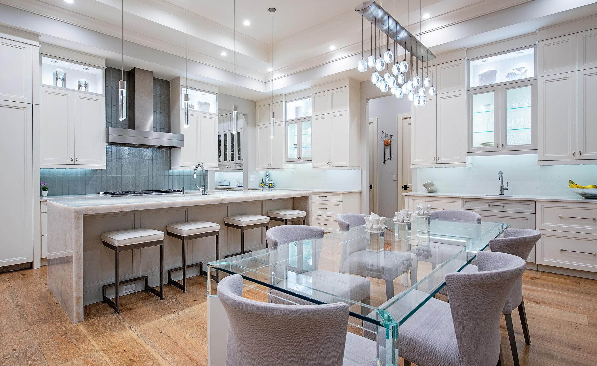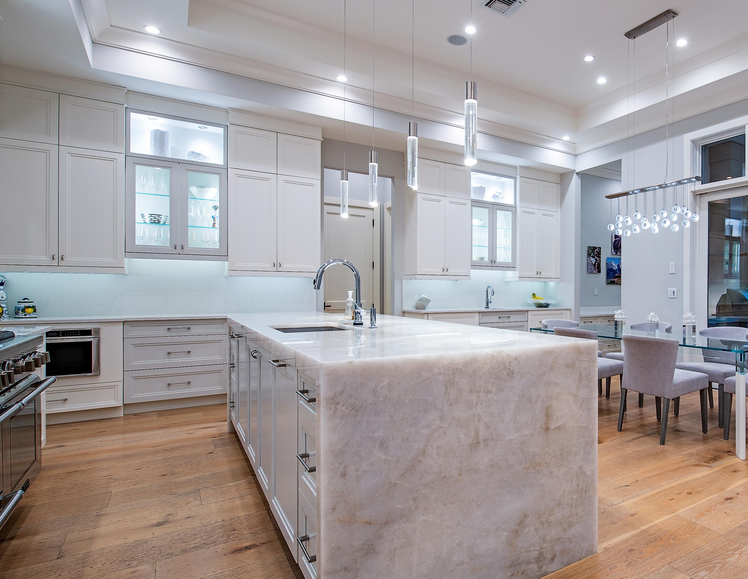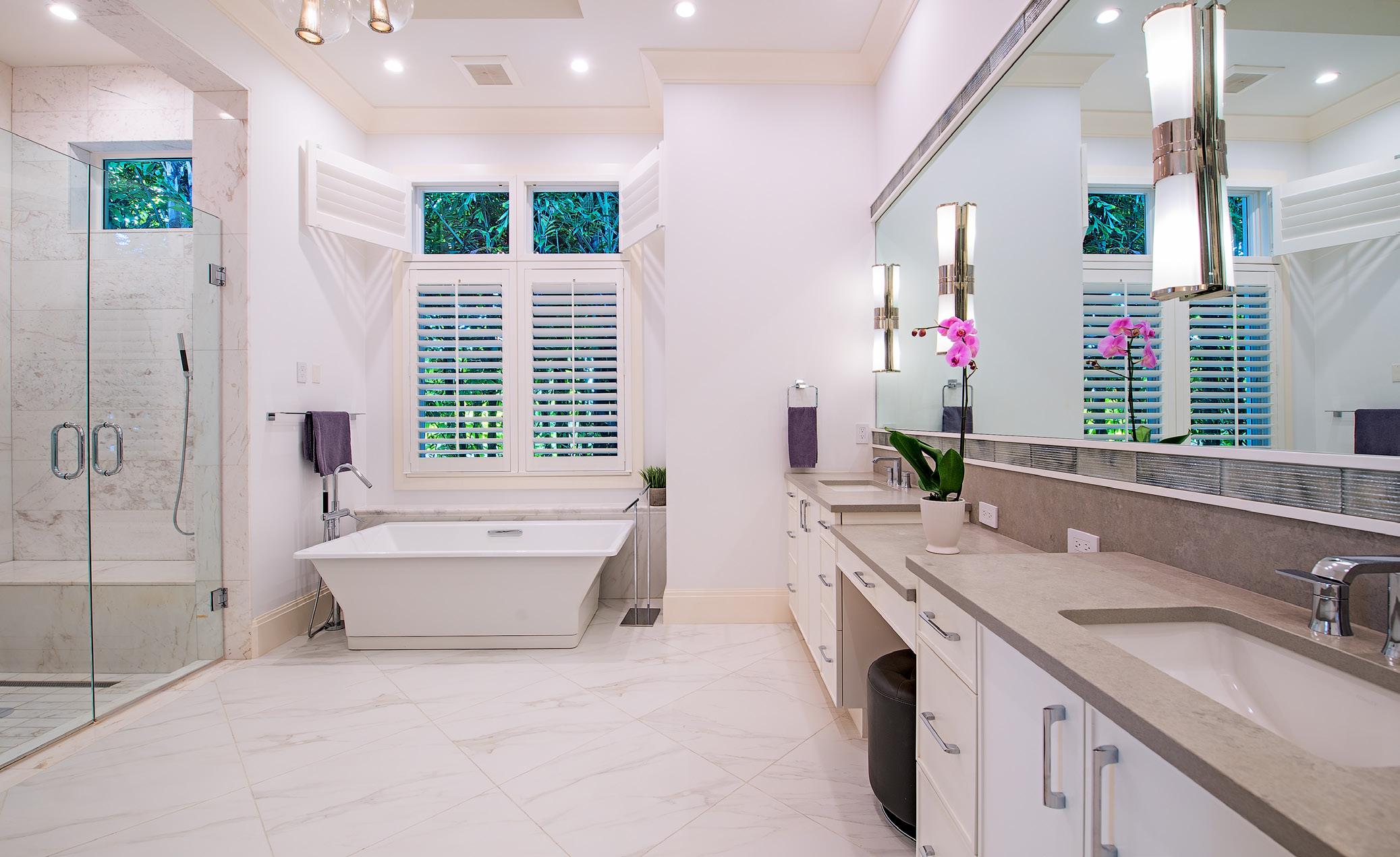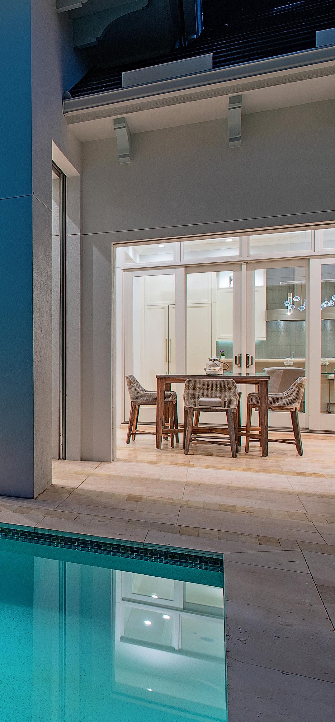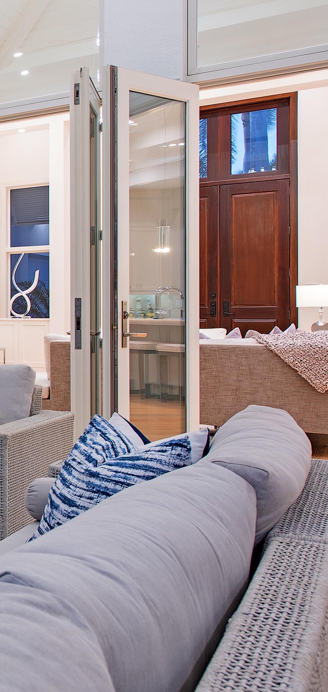 This beautiful home located west of Crayton Road features preferred southern exposure for sun on the pool and is a very short distance to the Moorings private beach and the Moorings Country Club. Professionally designed and furnished by Koastal Design Group in a contemporary beach style, the residence offers effortless living in a comfortable setting. Highlights include five ensuite bedrooms, six bathrooms, and a large, covered lanai that spills out onto the expansive pool deck. A wonderful gourmet kitchen features a gas cooktop, two dishwashers, two wine coolers, refrigerated drawers, and a butler’s pantry, with a breakfast room and large island. A double front door entry opens to a living area with high vaulted ceilings and pocketing glass sliders that fill the space with natural light. The covered lanai is thoughtfully appointed with a summer kitchen and fireplace and extends to the heated saltwater pool and spa. Inspired details include wide plank white oak floors, beadboard ceiling treatments, soft stone countertops, and large windows overlooking lush tropical landscaping. Additional features include a split 3-car garage, Andersen impact windows, and high elevation. Furnished.
