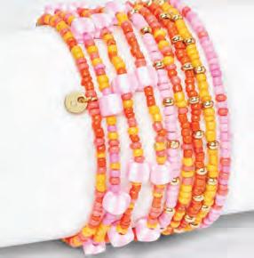 • Stack bracelets high. Mix colors, metals and fabrics to keep the effect interesting. Stretch bracelet sets, Target, $12.99 each