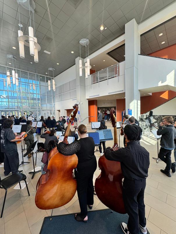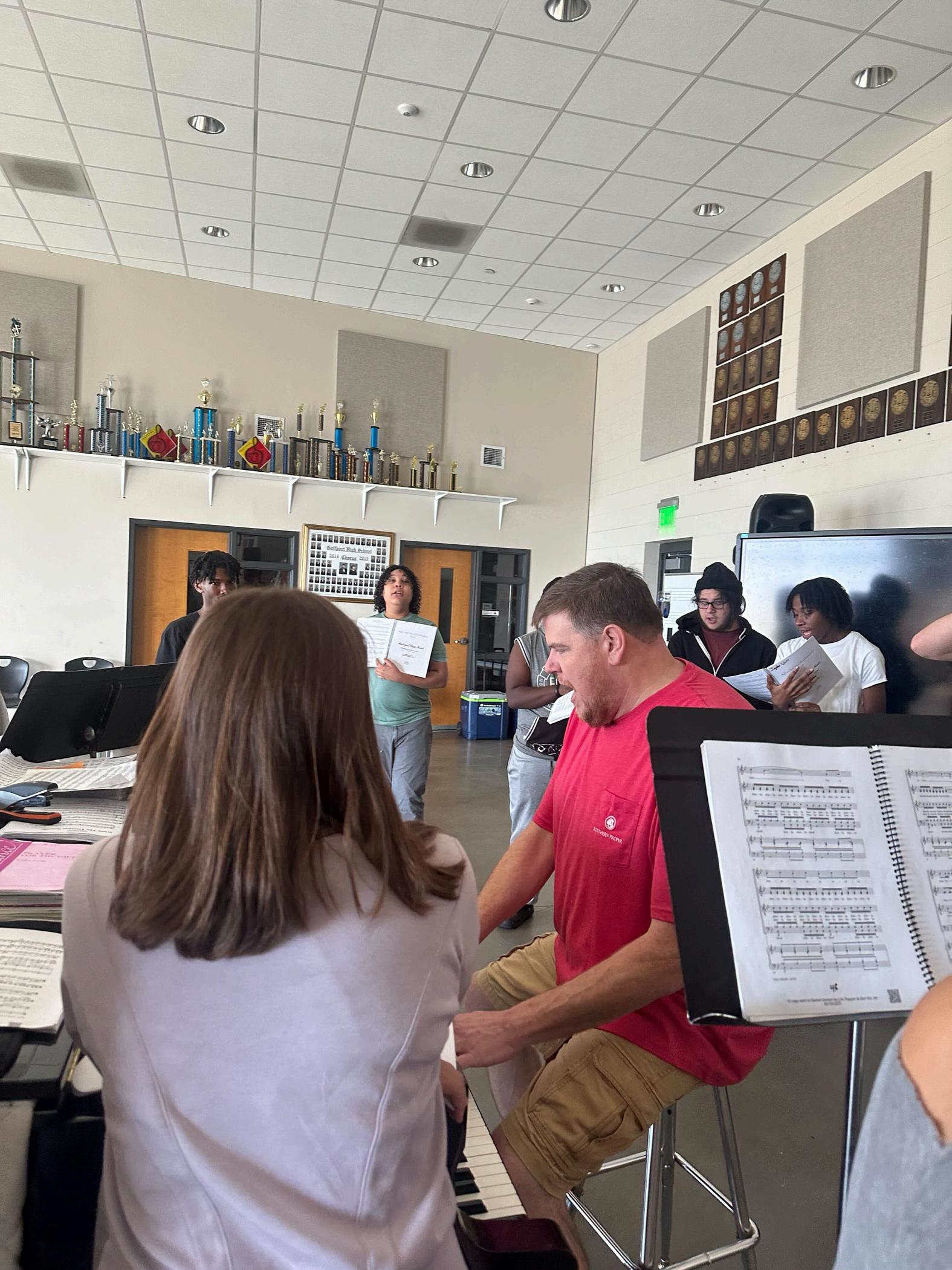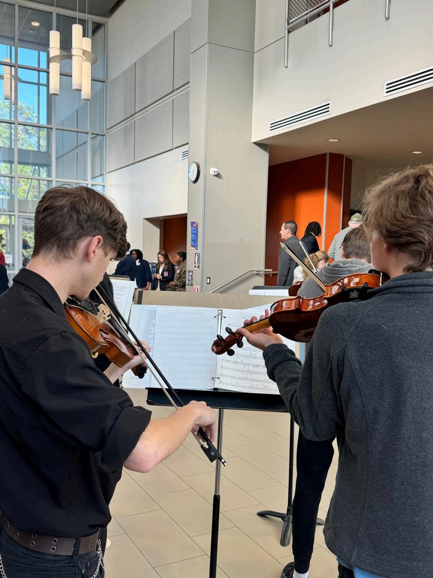 The Gulfport High School Admiral Band proudly participated in the City of Gulfport’s Veterans Day Parade in downtown Gulfport! Students and staff had a wonderful time honoring and celebrating our veterans during this special event In addition to the parade, the GHS Fine Arts Department also took part in the school’s Veterans Day celebration. The Strings Department provided beautiful prelude music in the school foyer, the Band performed all the military fight songs, the Choir delivered a heartfelt rendition of the National Anthem, and the Art Department showcased stunning artwork created in tribute to our veterans We are so proud of our students and their dedication to honoring those who have served.