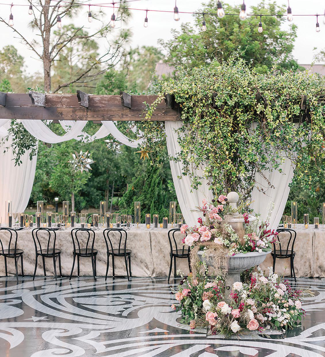 It’s not often you see a mod scene like Jay Allen and Kylie Morgan’s wedding—especially in Southwest Florida, where the coastal aesthetic reigns. After Hurricane Ian destroyed their venue in Fort Myers Beach, the Nashville-based singer-songwriters transformed La Casa Toscana into a romantic, rock ‘n’ roll paradise, complete with a Johnny Cash-inspired suit for the groom, a tattoo artist on site for unconventional party favors and a kaleidoscopic dance floor (page 46). The black-and-white-themed visual was softened by Kylie’s flowing boho dress, Jade Strings’ ethereal music, and delicately hung white chandeliers and florals on a banyan tree. The juxtaposition is possible in Southwest Florida thanks to the wealth of party professionals who know how to infuse sheer elegance into highly personalized experiences.