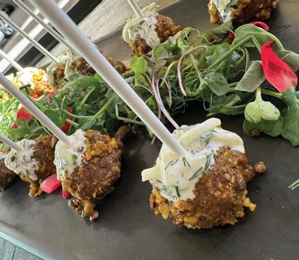 Chef Stephen Coe of Cork + Table Kitchen and Bar in Plymouth, Massachusetts, blended local flavors with his contemporary Massachusetts flair, with Gulf shrimp and grits served with saffron butter and smoked gouda, bacon-wrapped Ibérico pork belly, and sous vide filet mignon and short rib bonbons. Husband-wife duo Ariel and Christopher Jackson, of the legendary Jackson Family Wines in Oregon’s Willamette Valley, mingled with fellow diners, sharing tasting notes and stories about their pours.