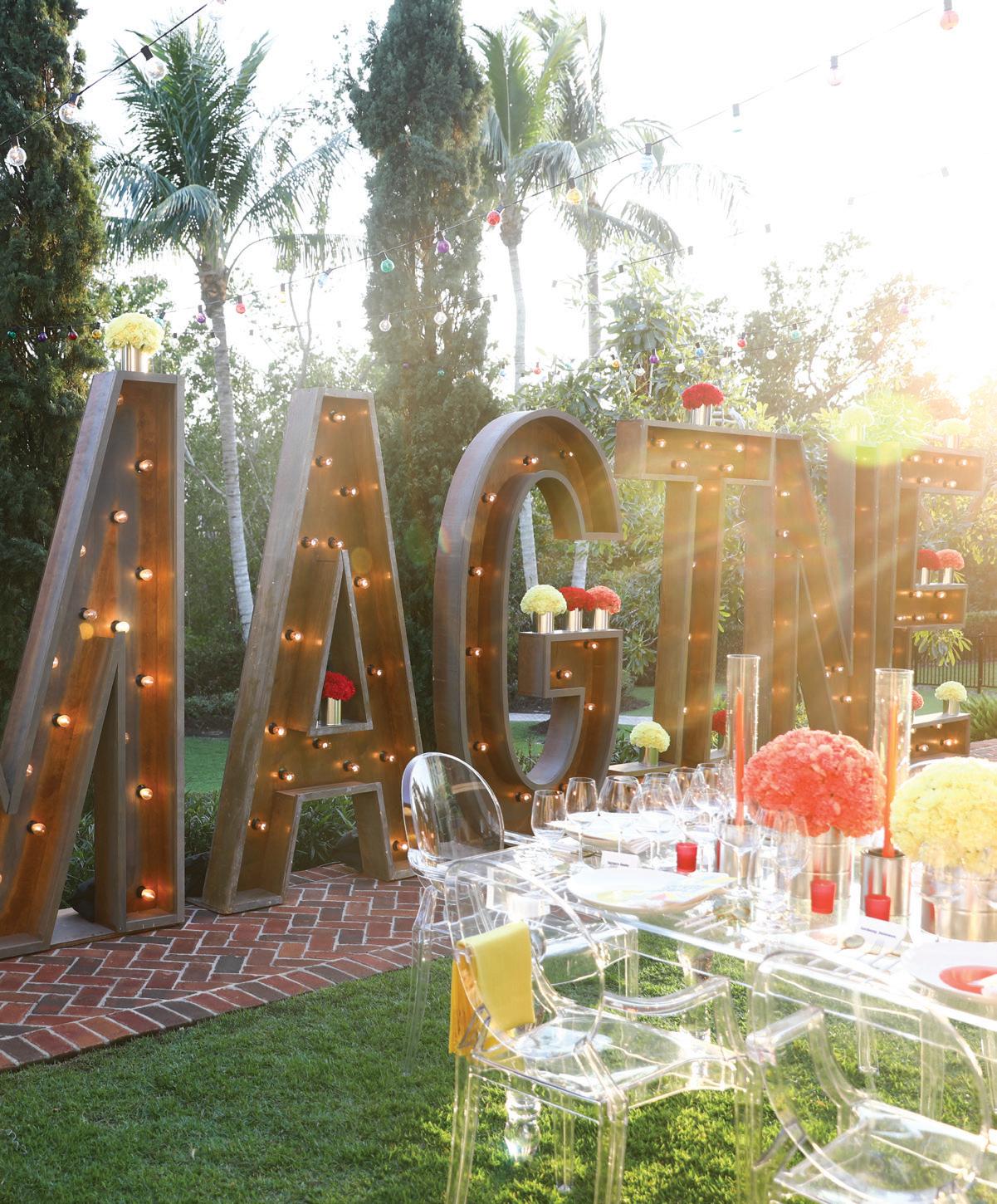The Windy City skyline got another nod from Jana, who recommends deep-dish pizza cutters as playful party favors. When it comes to domestic themes, Courtney prefers to transport guests to a different period for extra stylistic oomph. “I love retro Palm Springs—something that’s tropical with bright colors and clean lines and a desert vibe,” she says, adding that bringing in influences from mountainous and red-sanded landscapes can set your function apart from the bounty of beach soirees.