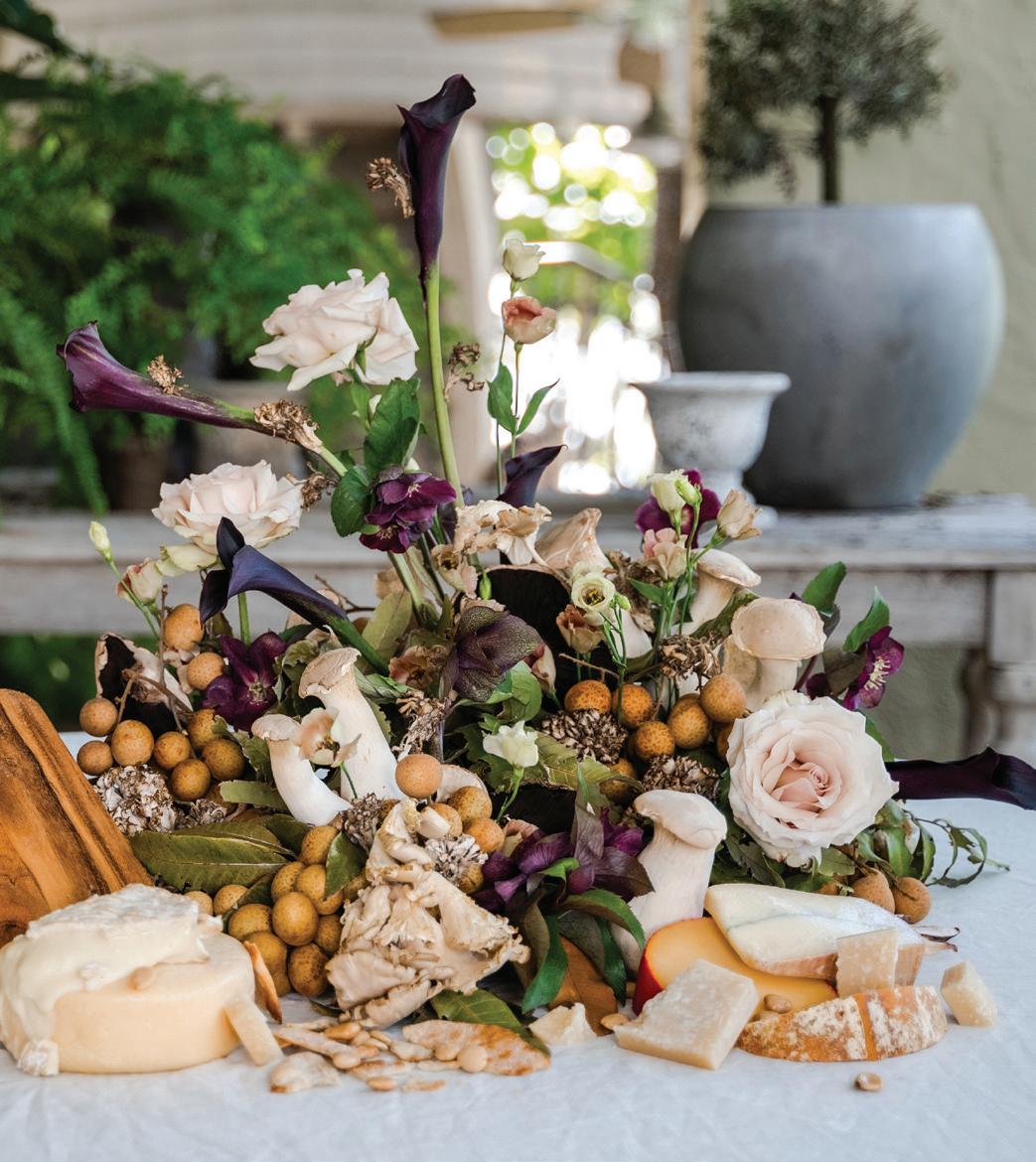Mr. Fun Guy Bill Nelms’ Port Charlotte-grown king trumpet, maitake and oyster mushrooms serve as the jumping-off point for a woodlandinspired cheese table.