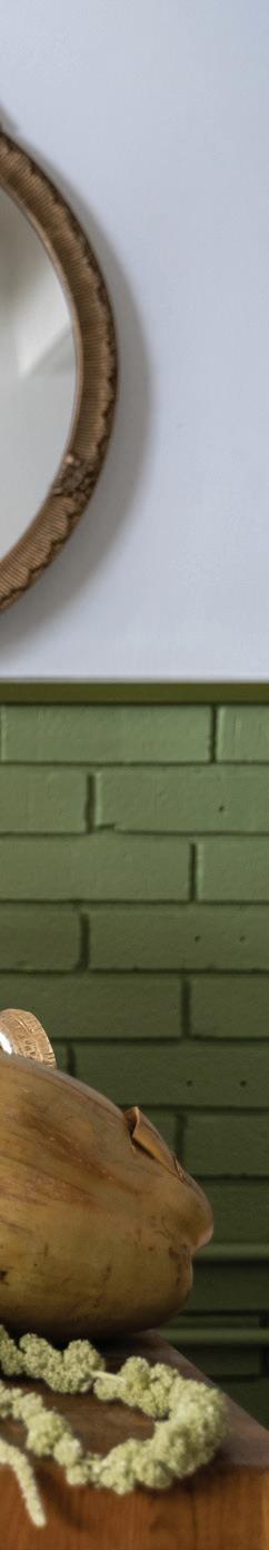 Kaleidoscope plays off the mushrooms’ velvety texture and sandy hues to create a whimsicalmeets-moody scene balanced by quicksand roses, lisianthus and stately purple calla lilies. “We kept referring to it as our fairy garden,” Sean says.