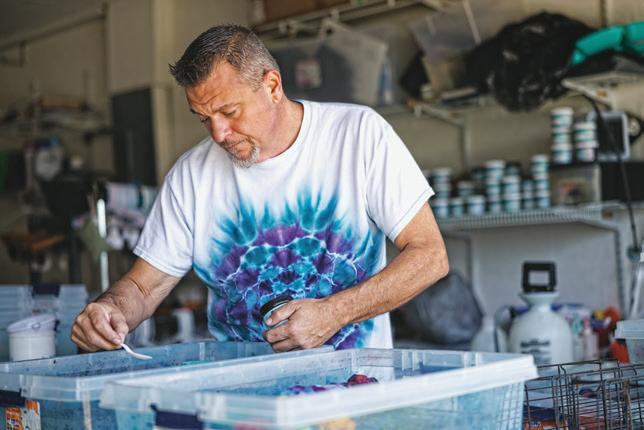 Incorvaia moved to the Fort Myers area in 1995 and got into the restaurant industry, becoming a popular bartender at spots including the British Open Pub in Bonita Springs. He started playing around with tie-dyeing about seven years ago. He was admittedly not artistic by any means, but he found a creative spark in wrapping a T-shirt in rubber bands and soaking it with dyes to create unique designs. “I couldn’t