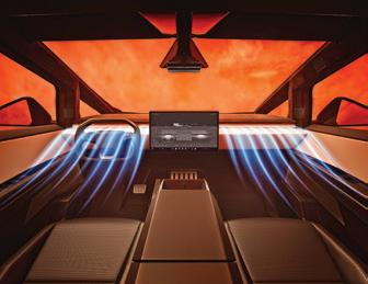 The interior is a minimalist playground, highlighted by an 18.5-inch front touchscreen, a 9.4inch rear touchscreen and a yoke-style steering wheel. There’s comfortable seating for five.