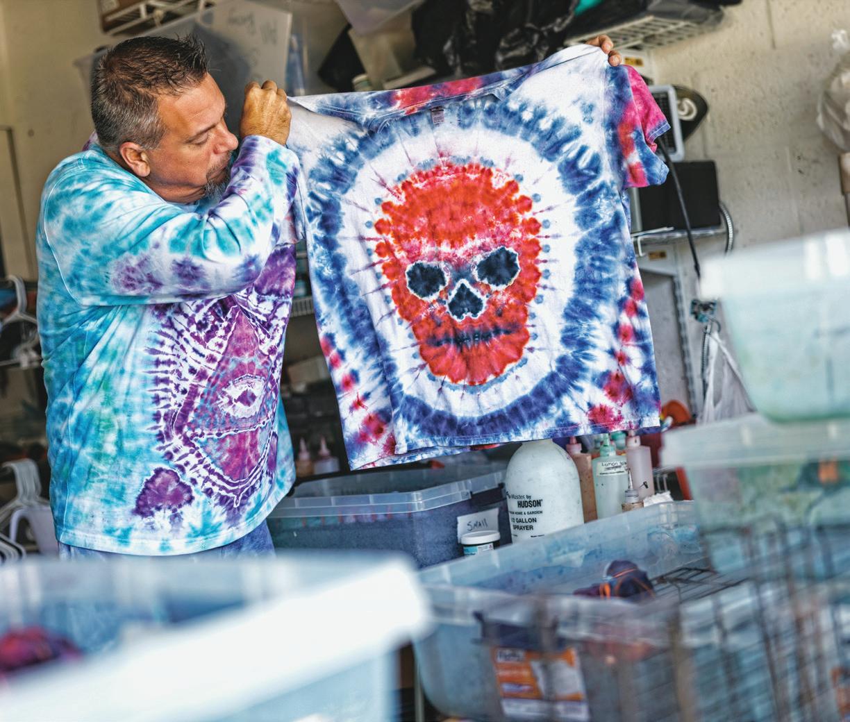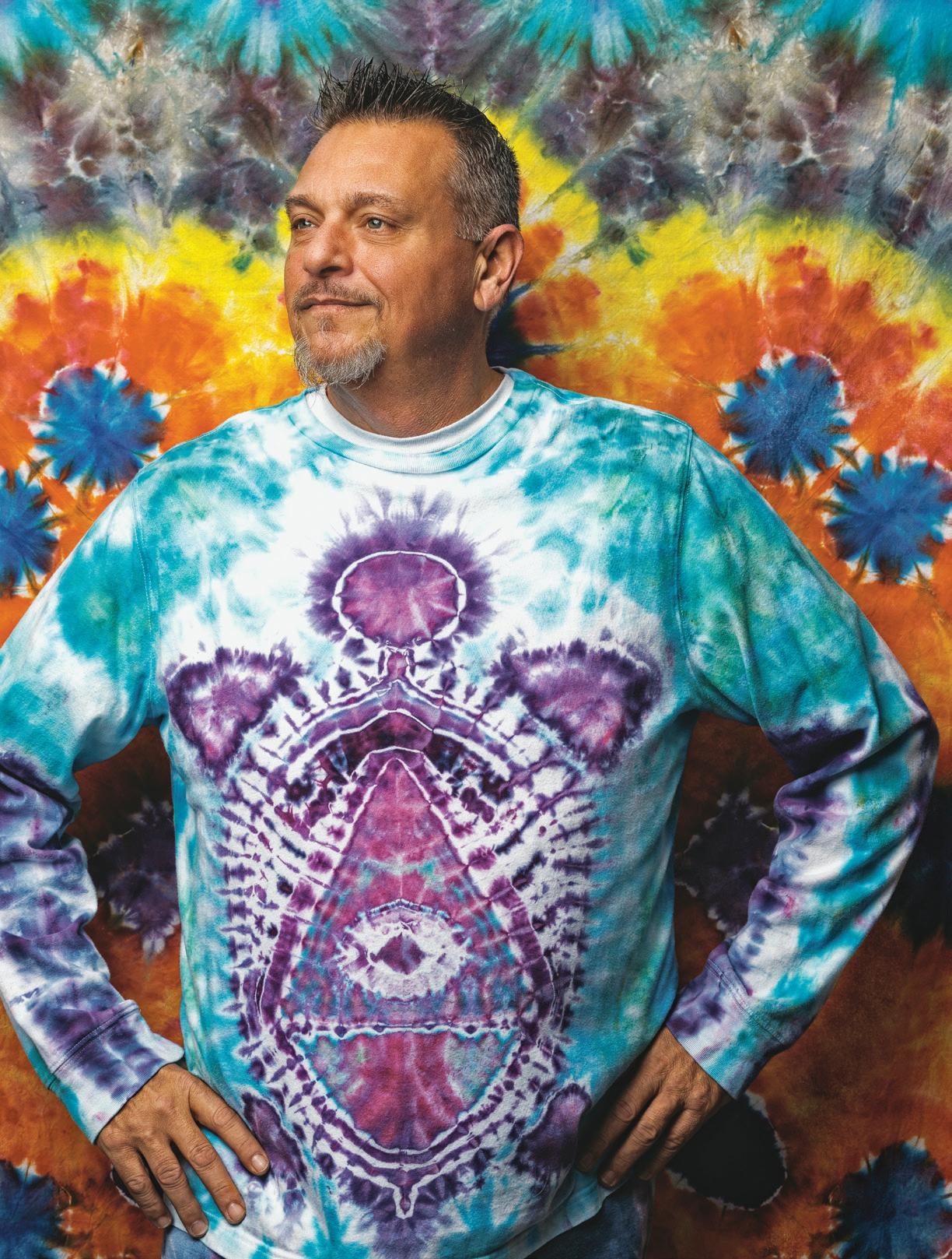 He’s continued to live the lifestyle with his business Inkys Tie Dyes—he sells handmade tie-dye shirts, tapestries and other apparel featuring elaborate designs ranging from turtles to guitars to colorful mosaics. “The creativity aspect is what drives me,” he says.