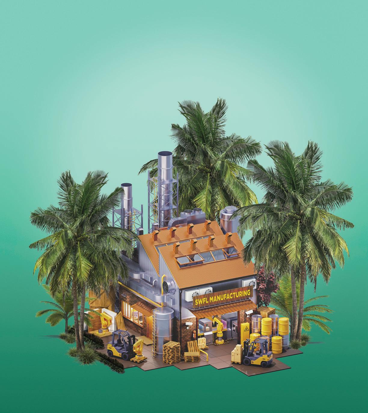 In “Building Growth in SWFL” on p. 28, Sheldon Zoldan takes inventory of several manufacturers that have put down roots in our vicinity. Skilled workers and available land for factories are both on the scarcer side in Southwest Florida, but from the watercraft of Nor-Tech Hi-Performance Boats to Arthrex’s lifesaving medical devices to the inflatable amusement park equipment
