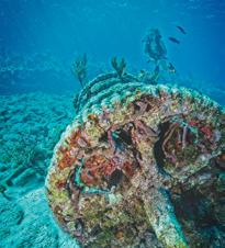 The Vitric may have given Molasses Reef its name, but it’s not the most famous wreck to have foundered here. In 1887, an Austrian ship loaded with cotton out of New Orleans crashed into the shallow-water coral formations. As the schooner took on water, the bales of cotton expanded until the pressure caused the ship to break apart. Today, most of the boat has disintegrated except for its windlass, which sits at roughly 25 feet below water, and has become a popular destination for divers and snorkelers. The metal winch makes for spectacular viewing underwater and fantastic dive photos.