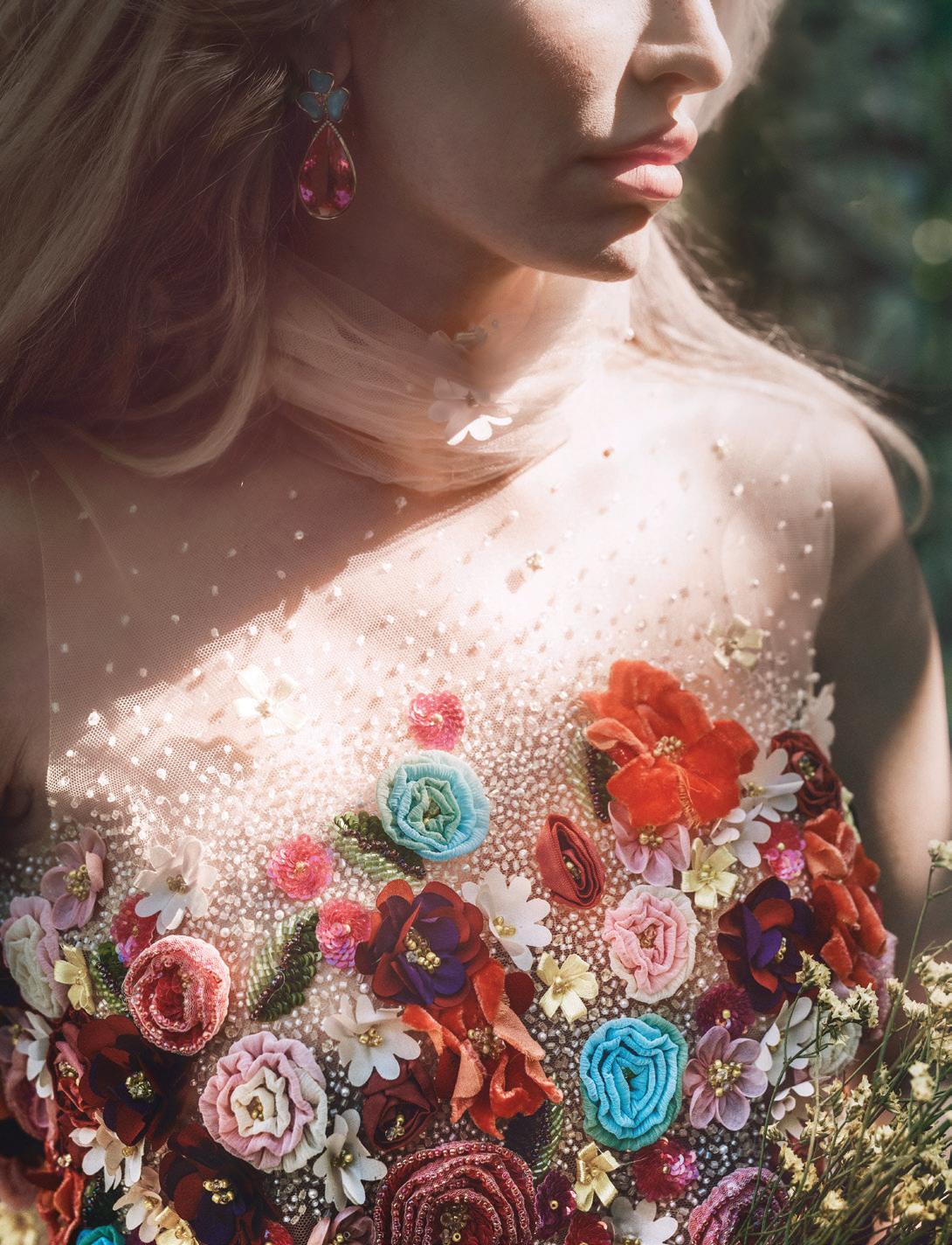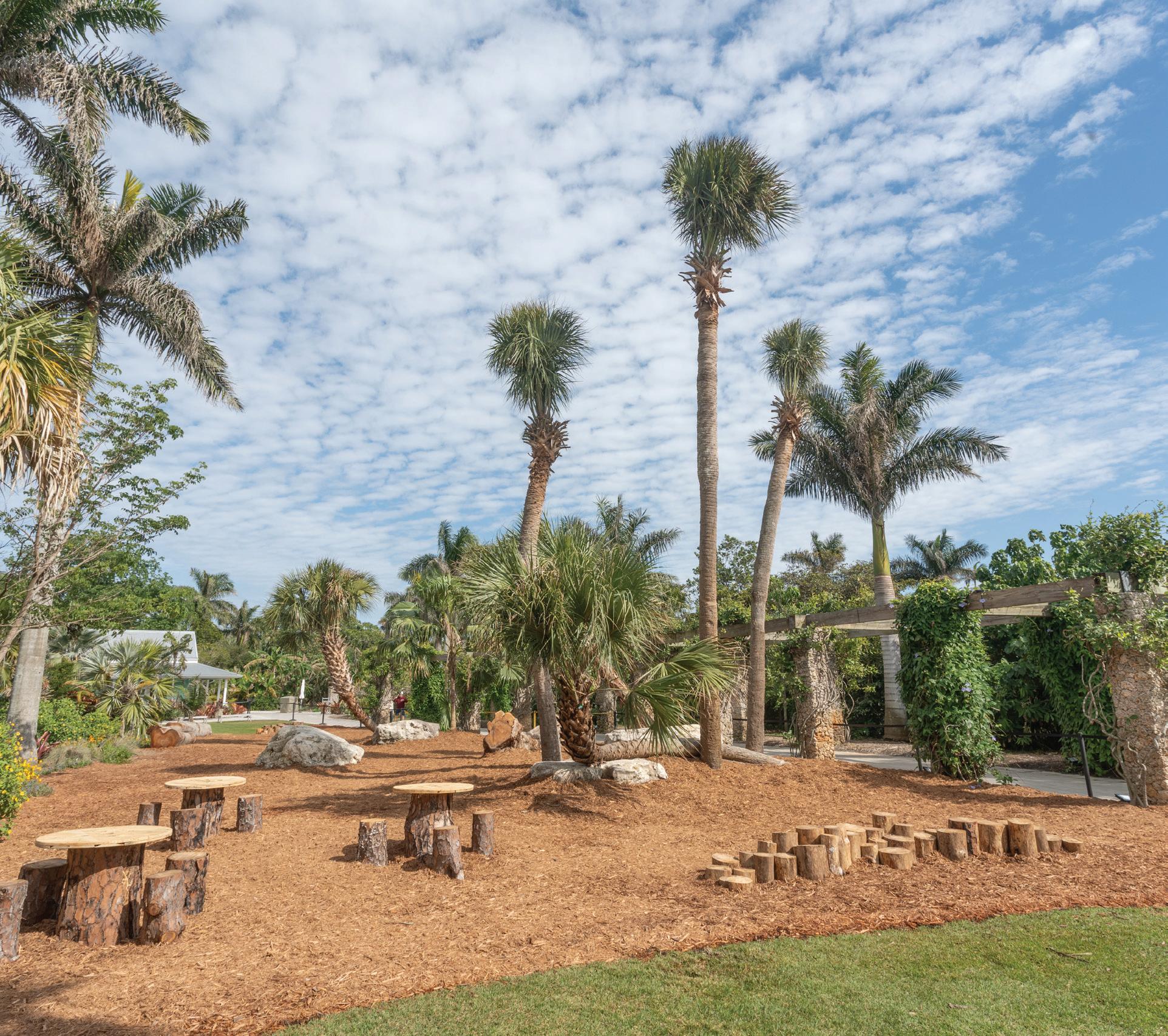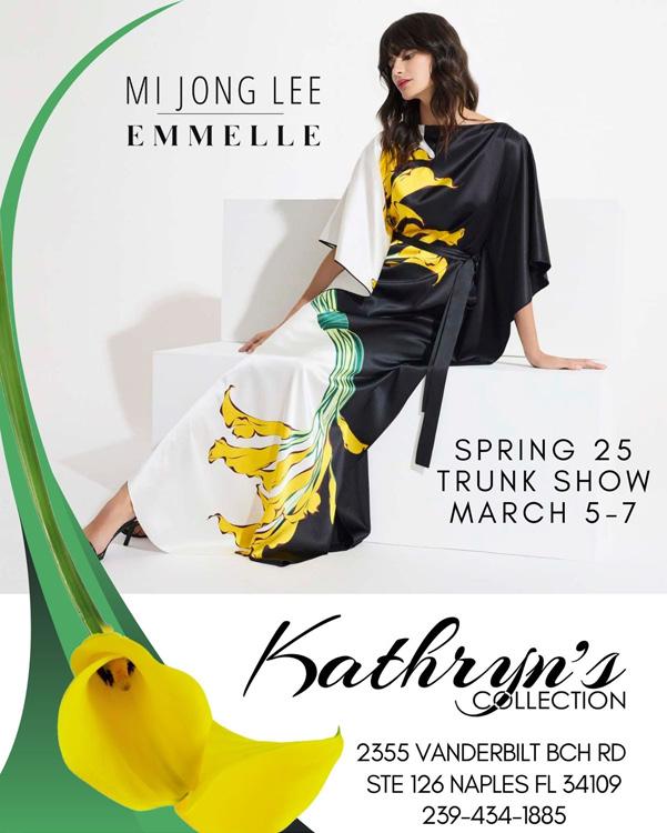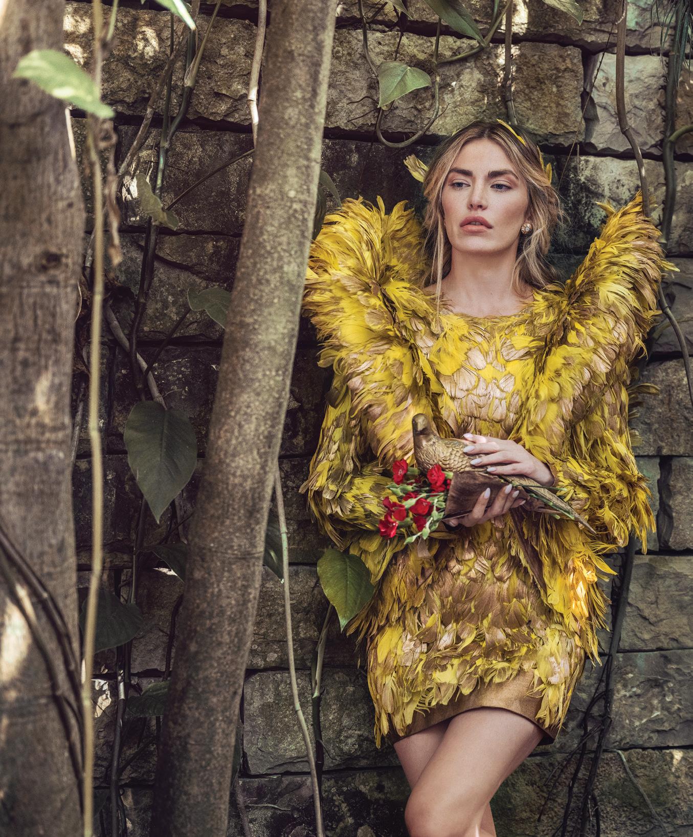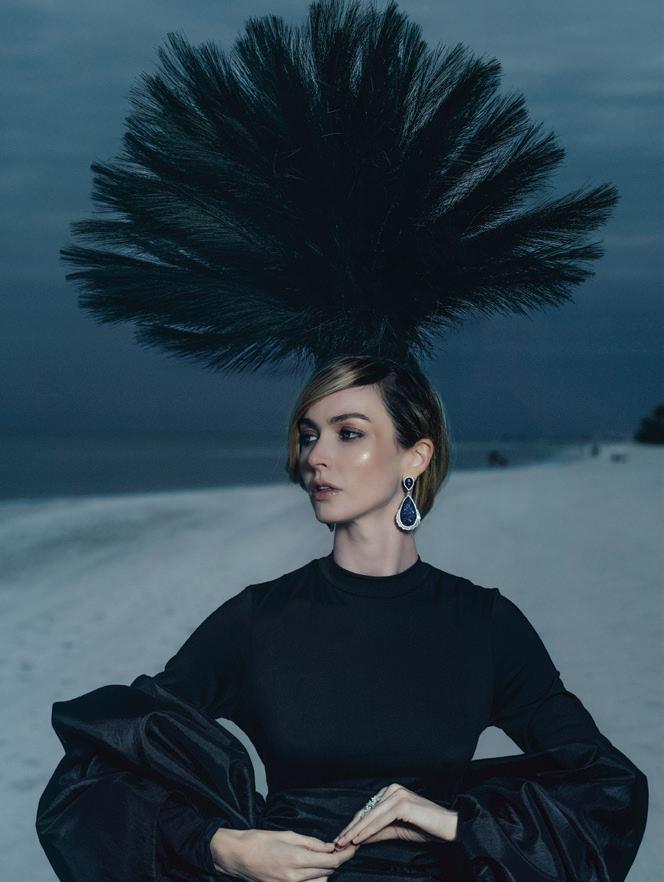 Against Naples Botanical Garden’s lush backdrop, spring fashion embraces nature’s palette with feathered confections and garden party silks.