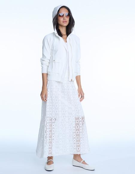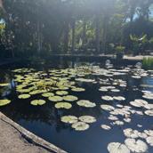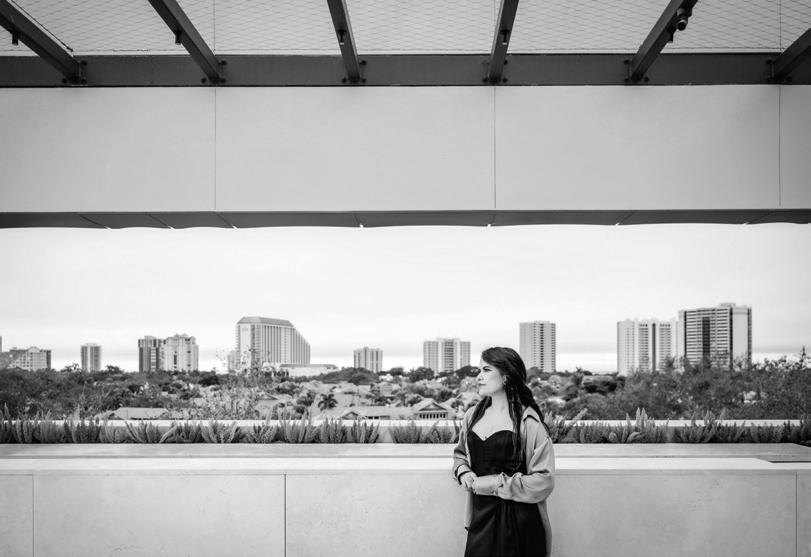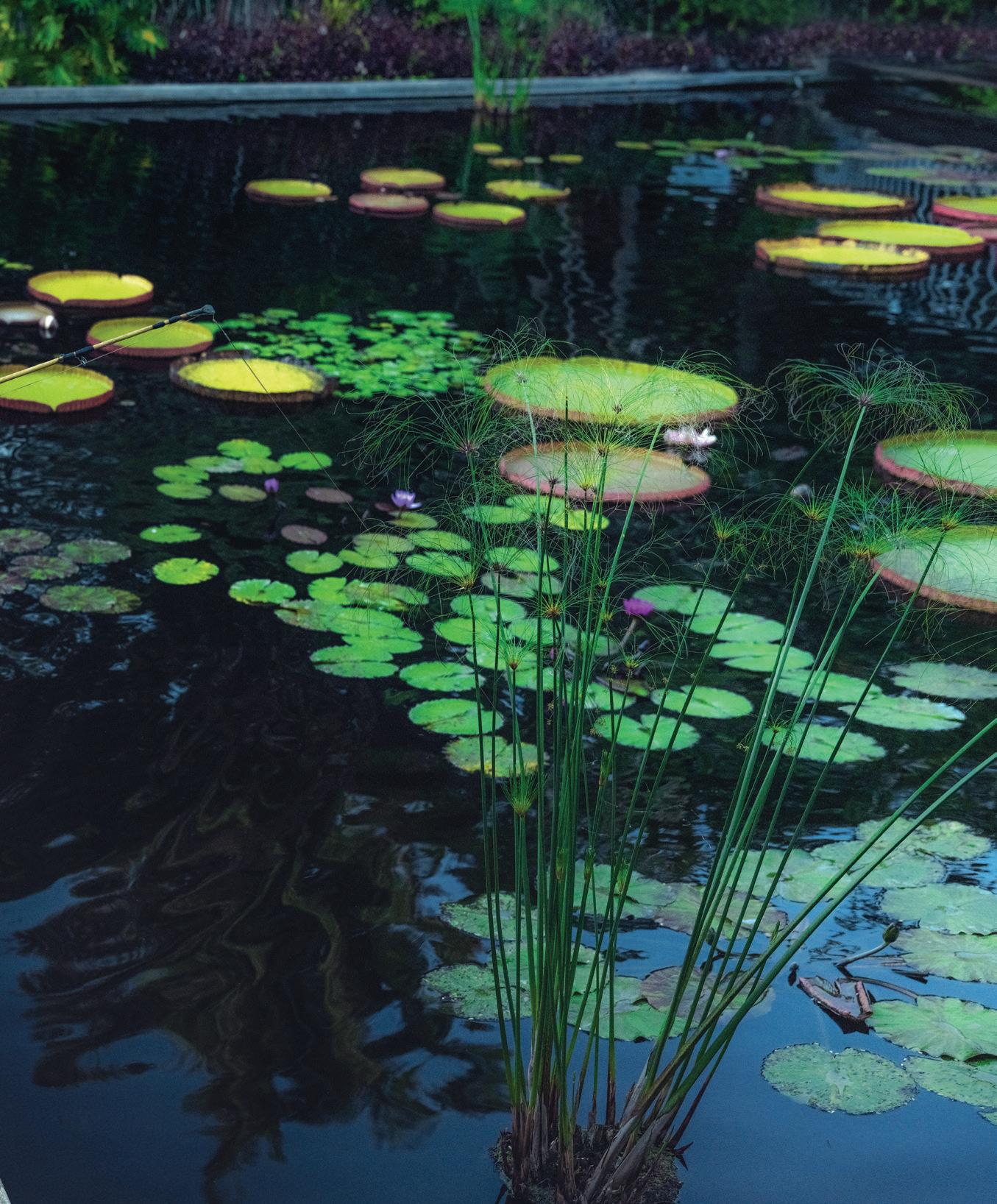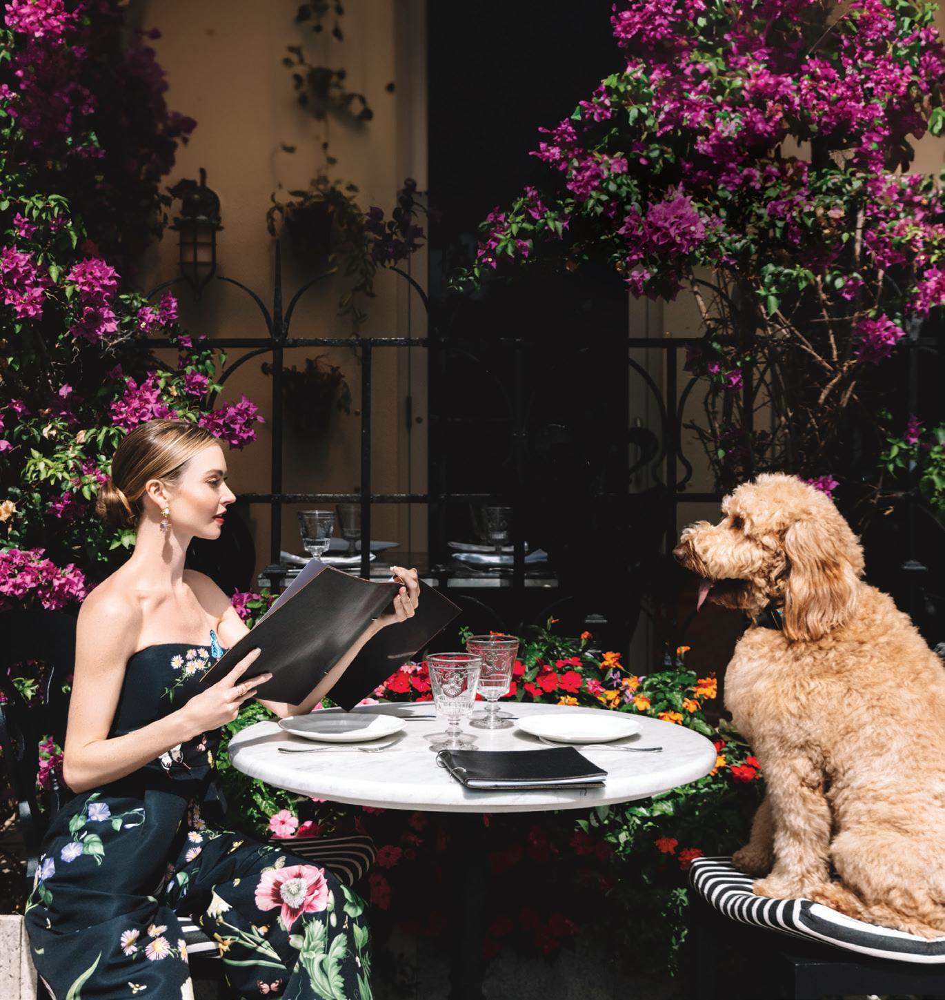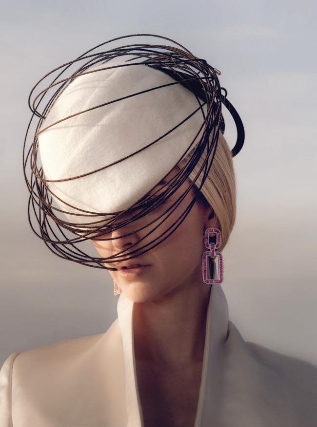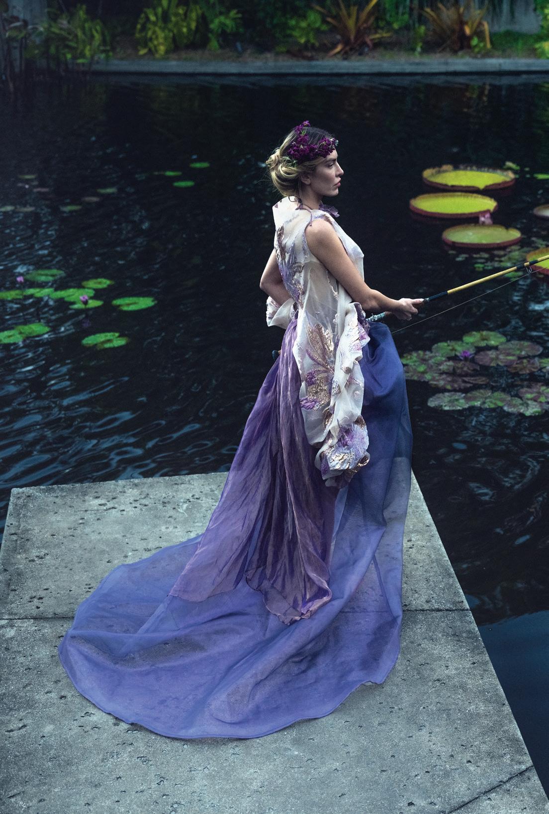Against Naples Botanical Garden’s lush backdrop, spring fashion embraces nature’s palette with feathered confections and garden party silks.