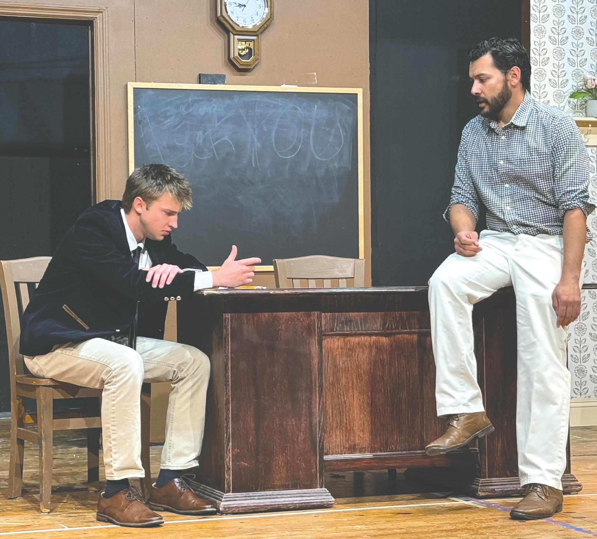 Jim Quinn (Landon Libbey) gets emotional with Professor Alan Hoffman (Brian Muniz) during a scene in The Prodigal Son, opening May 16 at the Joan Jenks Auditorium at the Golden Gate Community Center. Photo courtesy Kevin Hendricks
