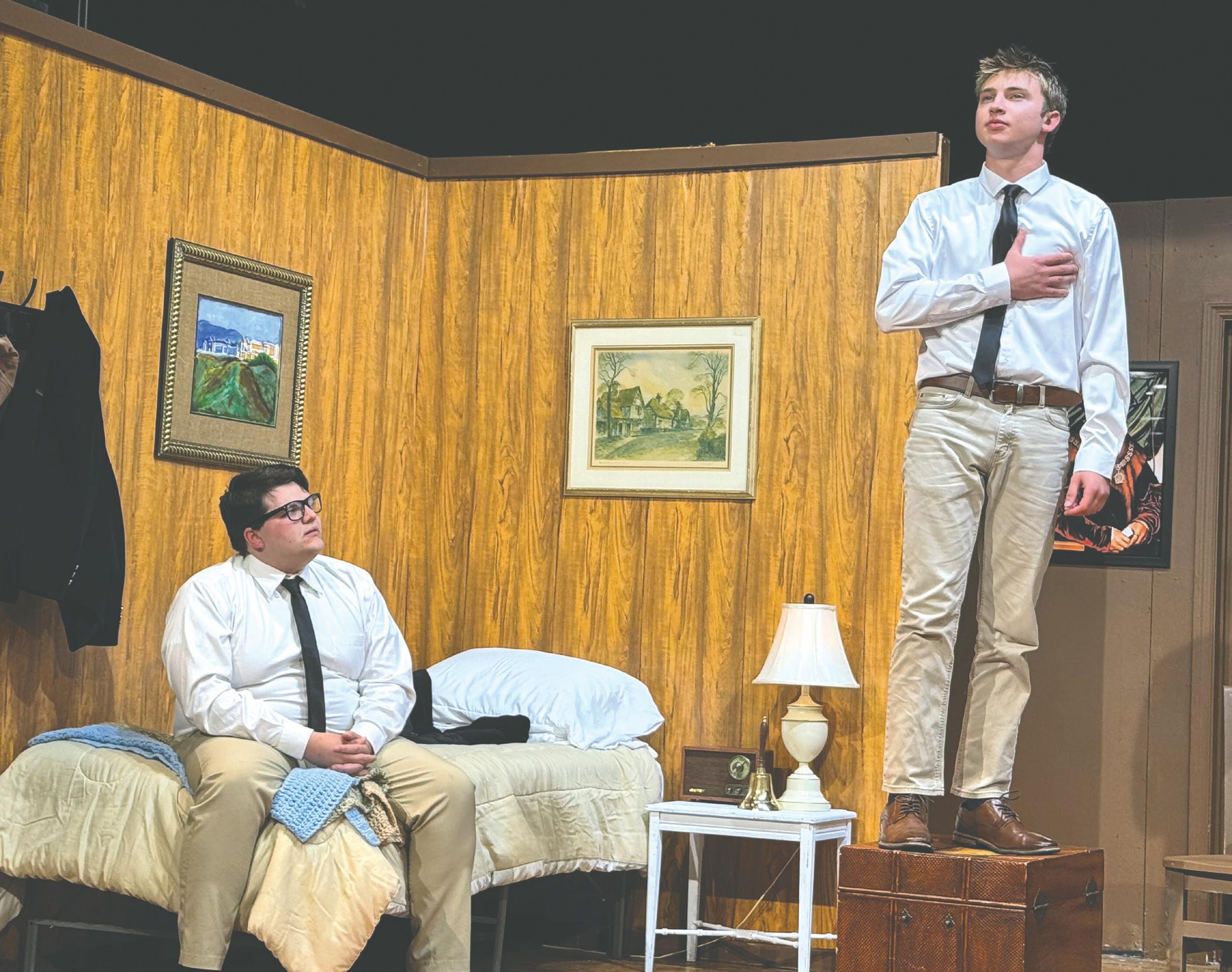 Jim Quinn (Landon Libbey) recites a poem to roommate Austin Schmitt (Gavin Ott) in the play The Prodigal Son Photo courtesy Kevin Hendricks
