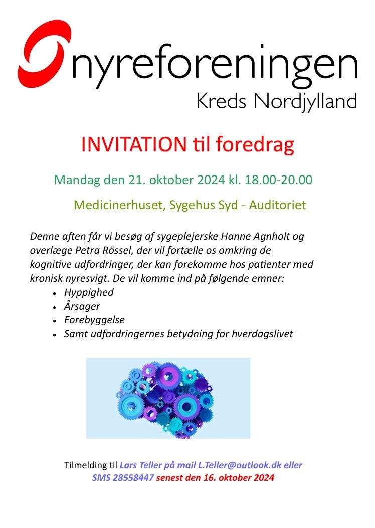 · 21. oktober 2024 : Foredrag om kogni ve forandringer ved kronisk nyresygdom