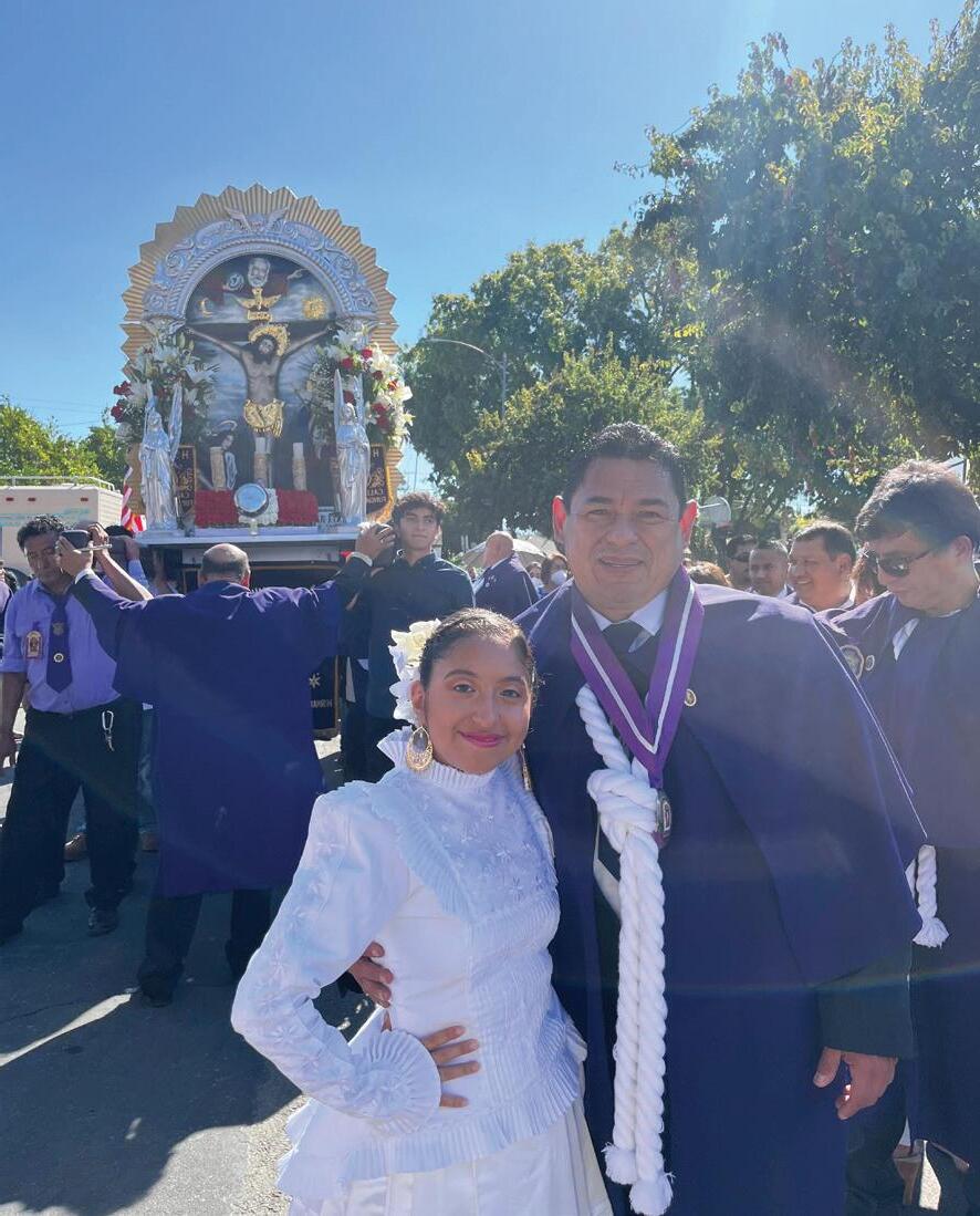 Sophomore Megumi Estrada Nakamatsu attends a celebration of El Señor de los Milagros, a major Peruvian holiday, in San Jose.