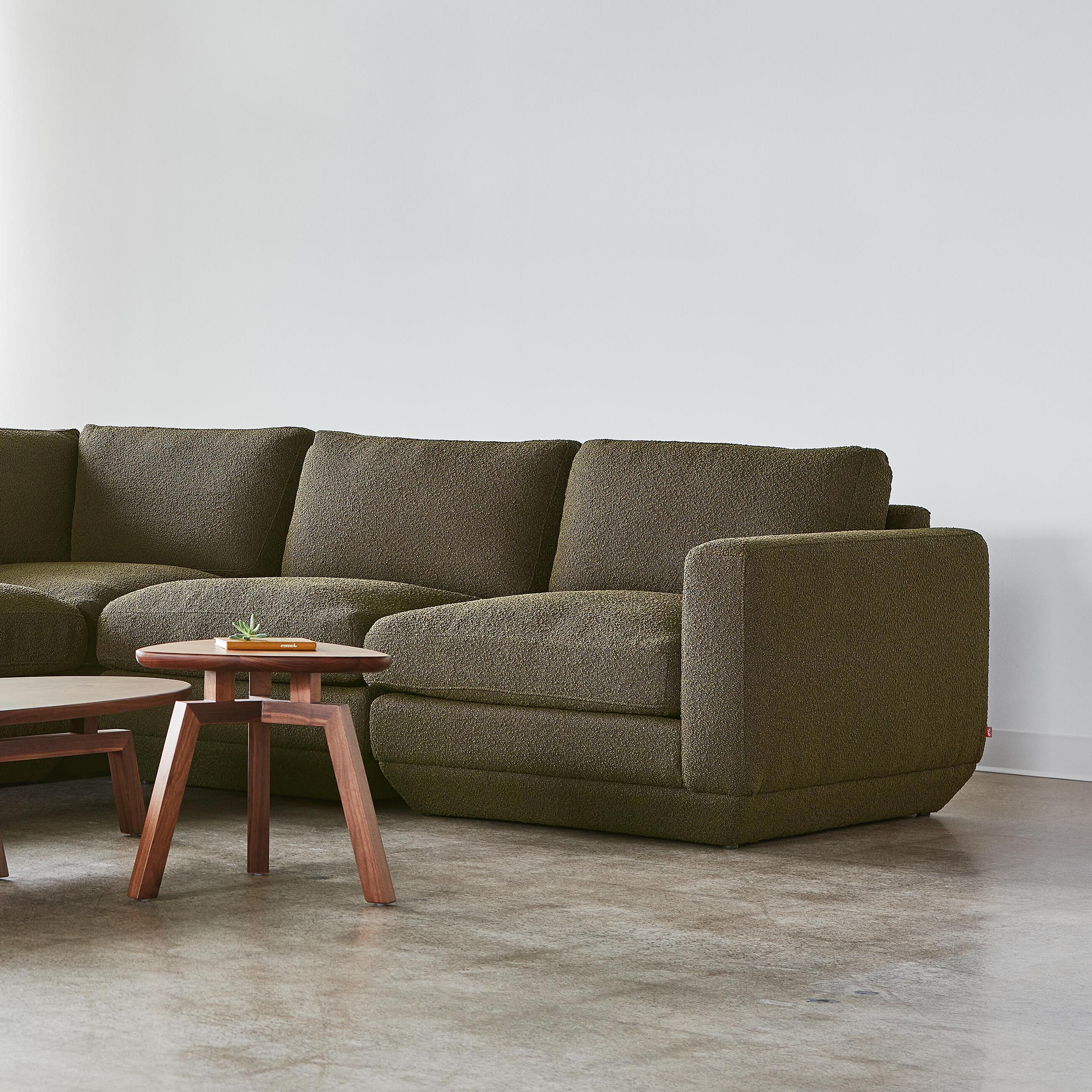 The Podium Collection features 7 modular components that can be arranged (and rearranged) in unlimited ways to bring stylish comfort to your space. Cushions are filled with synthetic down made from recycled water bottles.