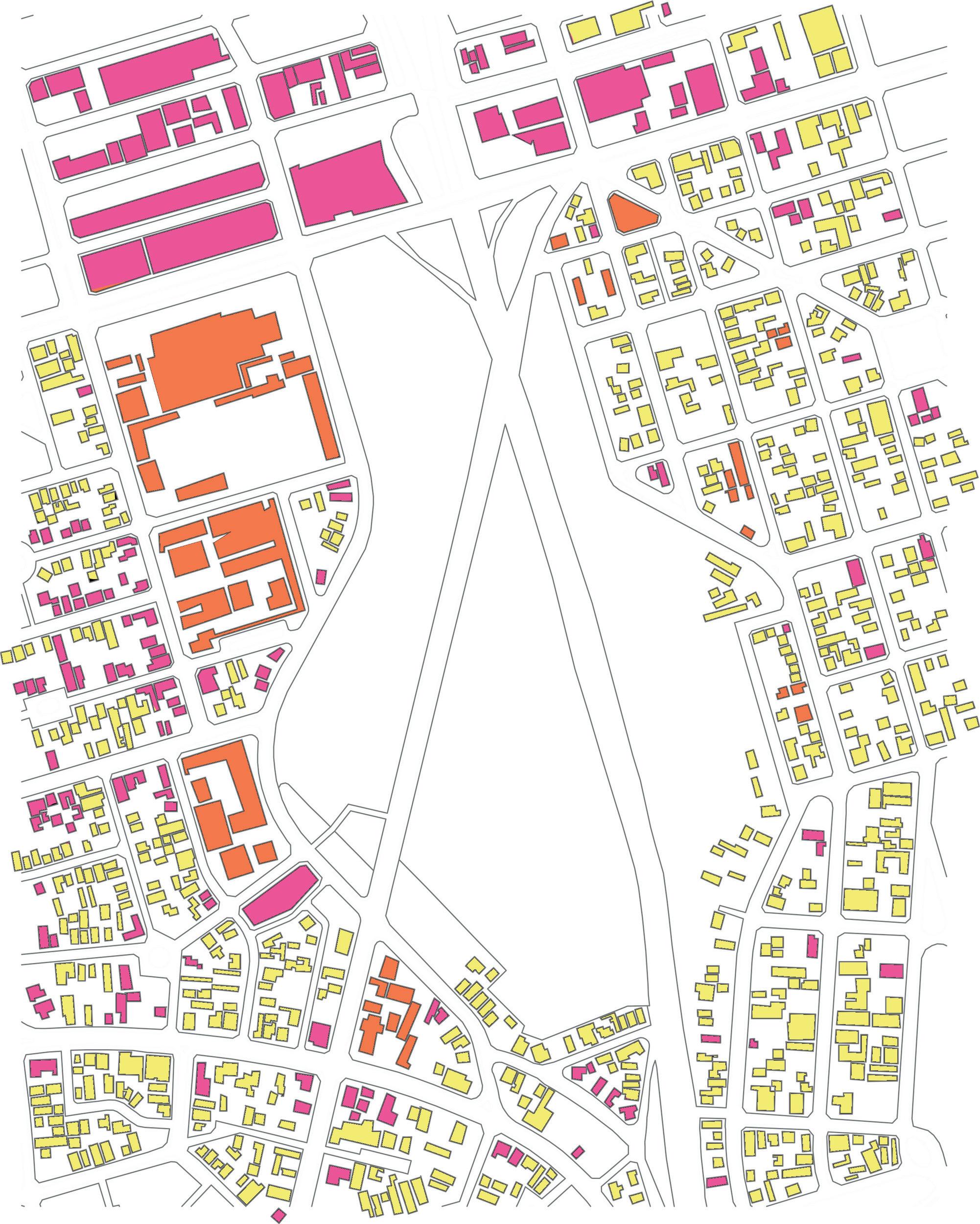 A análise do uso e ocupação do solo na área de influência do Parque Botafogo evidencia um território consolidado, com predominância de uso residencial (45%), distribuído sobretudo ao longo das quadras adjacentes ao parque. Os usos comercial e de serviços (20%) aparecem concentrados nos eixos viários de maior fluxo, funcionando como suporte às atividades cotidianas e reforçando o caráter urbano do entorno imediato. Os equipamentos institucionais (10%), como escolas, unidades de saúde e áreas administrativas, contribuem para a diversidade funcional e atraem fluxos constantes ao longo do dia. A parcela correspondente à infraestrutura viária (15%) reflete a presença de avenidas estruturais e do sistema de marginais ao longo do córrego, que moldaram historicamente a relação entre o parque e a cidade. Já as áreas classificadas como verde/parque (10%) correspondem ao próprio eixo linear do Parque Botafogo, ainda marcado por descontinuidades e trechos pouco qualificados.