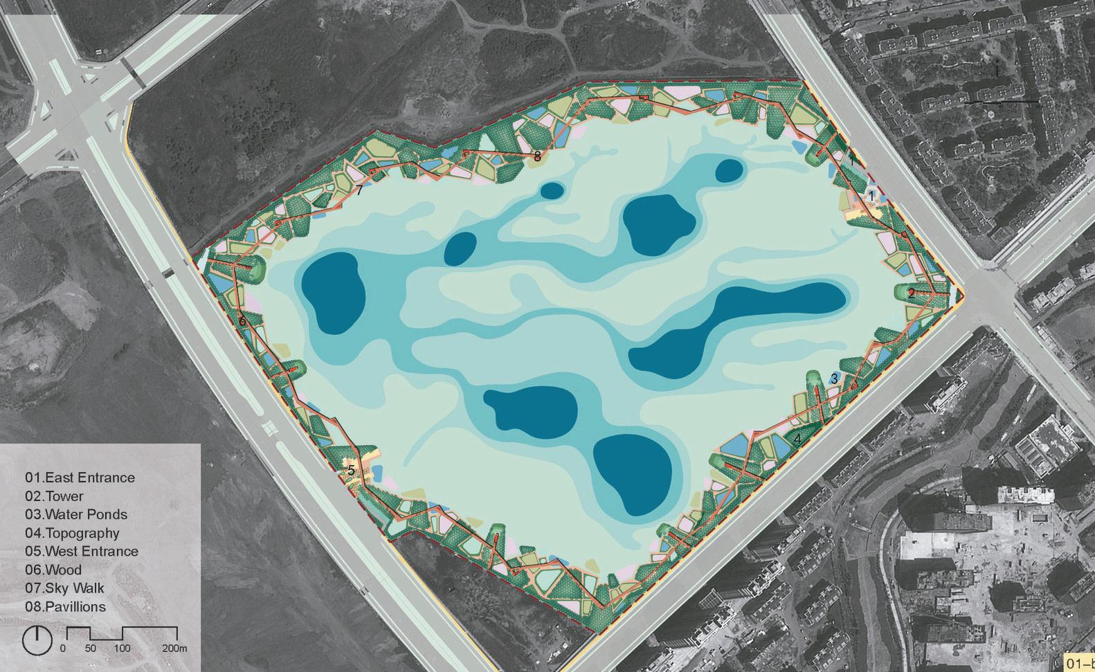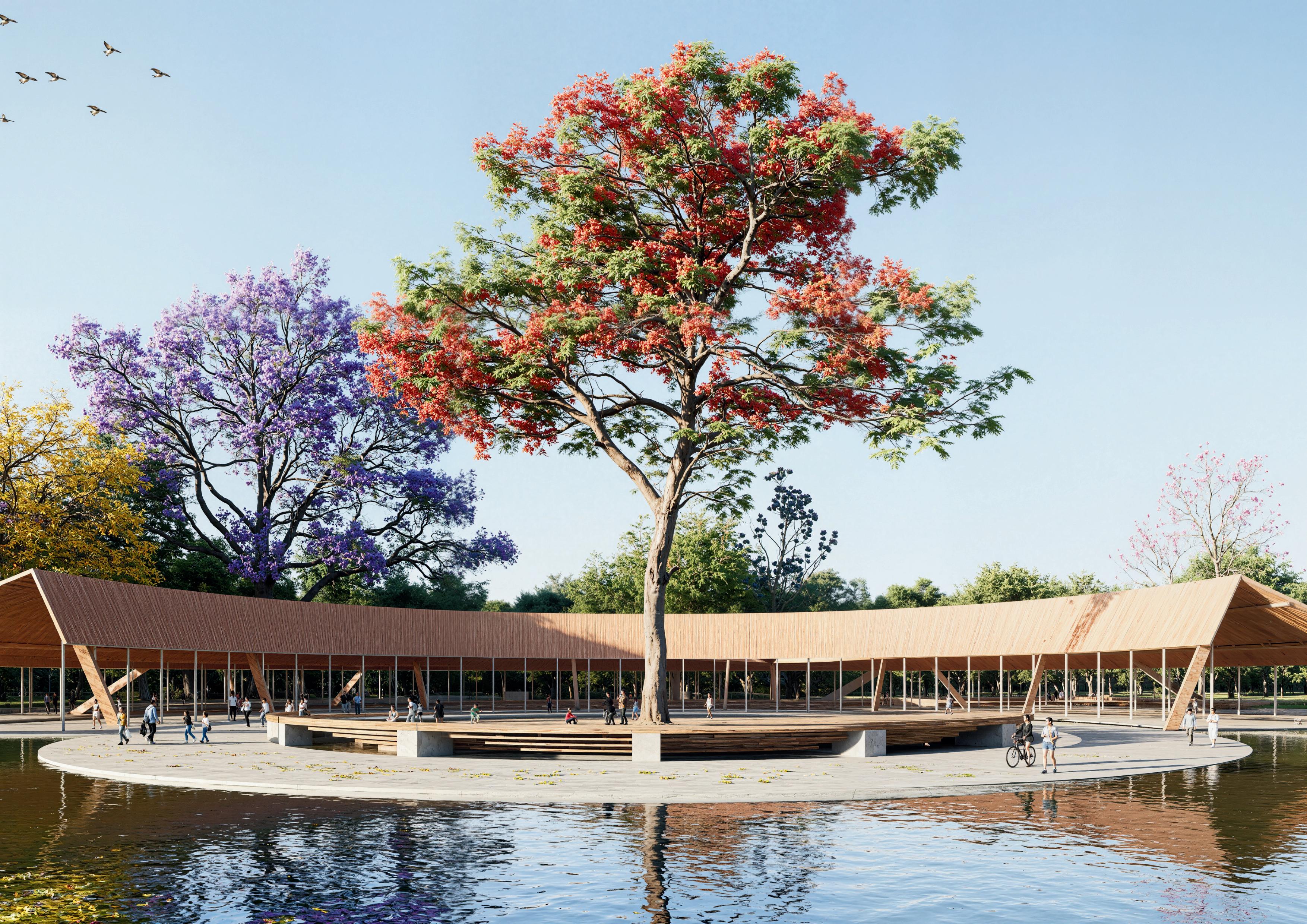 The intervention employs the concept of an “urban rhizome” as an organizing structure to create connections, continuous flows, and interdependencies among the fragmented sections of the park. The proposal articulates three complementary dimensions: ecological (green infrastructure, rain gardens, constructed wetlands for sustainable drainage), social (revitalized leisure spaces, environmental education, community identity, and participatory appropriation), and urban (inter-neighborhood connectivity, enhanced active mobility, and reconfiguration of the marginal road as an integrating element).