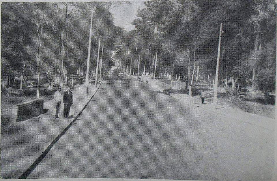 Foto em preto e branco dos anos 1970 – Mostra a Avenida Araguaia margeando o então Bosque Botafogo, com a vegetação característica da época
