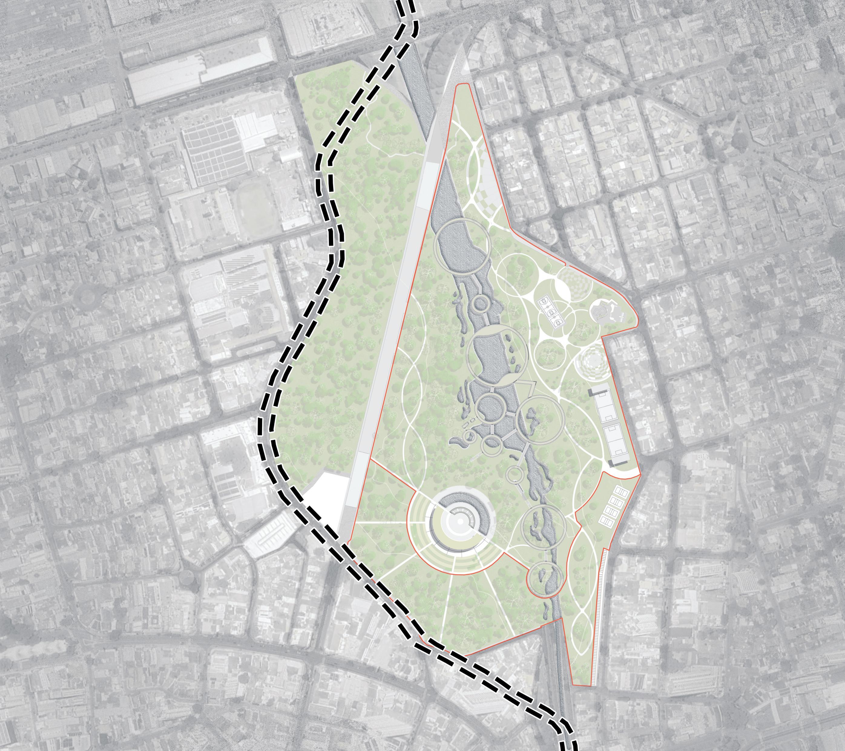 • Dimensão Ecológica: Restauração das funções ambientais do parque através da implementação de infraestrutura verde, recuperação do córrego Botafogo, introdução de soluções de drenagem sustentável, criação de habitats para biodiversidade e melhoria geral da qualidade ambiental. Esse eixo enfatiza a importância de reintegrar processos naturais ao ambiente urbano, fortalecendo a resiliência ecológica e a capacidade do parque de responder às variações hidrológicas e aos impactos da urbanização.