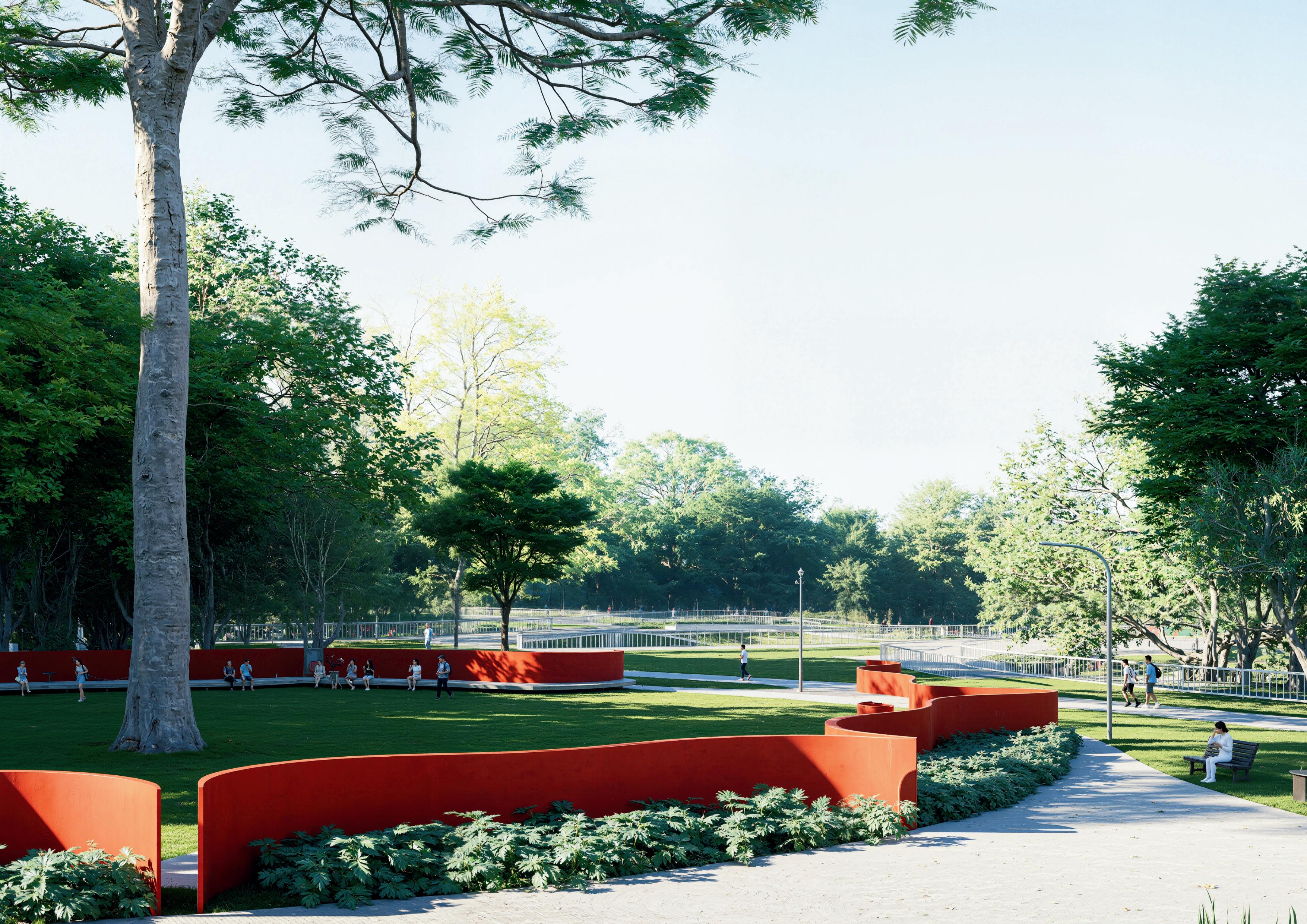 • Dimensão Urbana: Transformação do espaço público por meio da requalificação de áreas de lazer, reorganização de usos, criação de conectividade entre trechos fragmentados, ampliação da mobilidade ativa e integração qualificada com o entorno urbano imediato. Essa dimensão busca fortalecer a presença do parque no cotidiano dos moradores, ampliando sua função social e seu papel como articulador urbano.