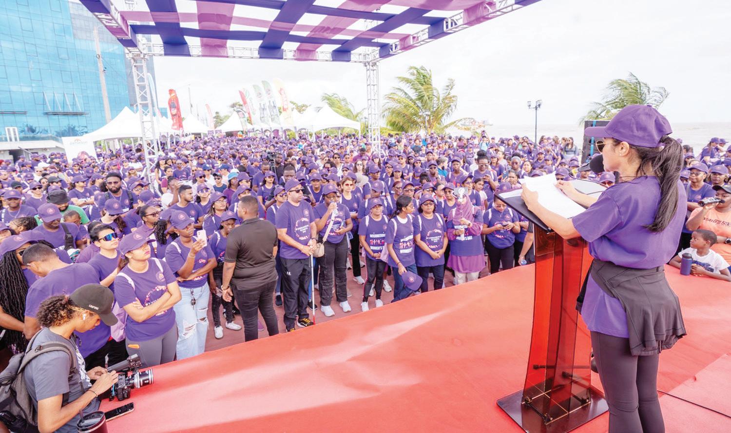 Thousands of persons of all ages and from all walks of life joined First Lady Arya Ali and cabinet ministers on Sunday for an International Women’s Day Walk. A sea of purple was visible as far as the eye could see as the enormous crowd made its way along Main Street towards the Kingston Seawall Esplanade. The event was held to honour women, recognising the important roles they play in strengthening our communities and country. It also allowed for reflection on the progress made towards gender parity, which is a challenge that undermines progress and the solutions needed to create a better, safer world for our women (Photo: First Lady Arya Ali/Facebook)