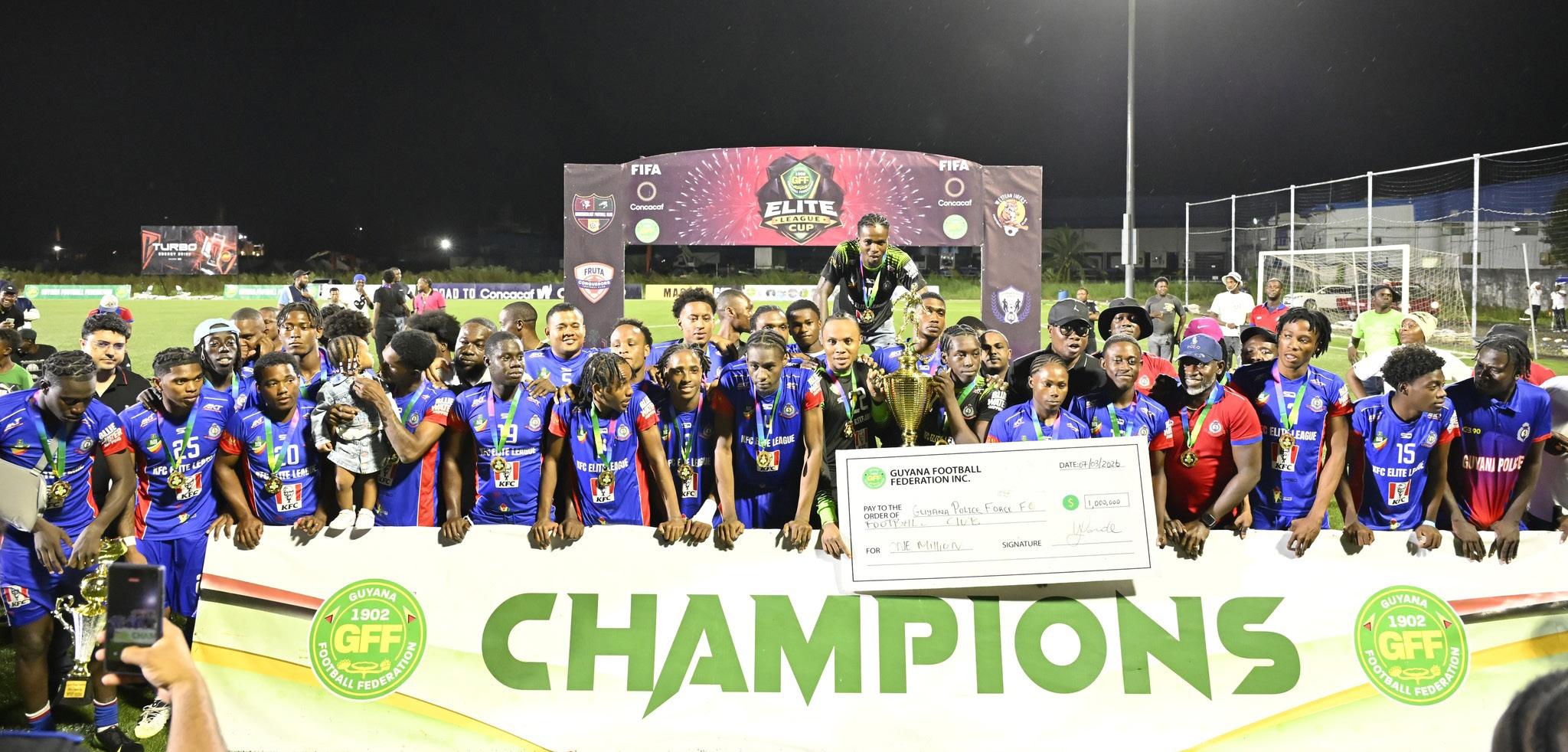 THE Guyana Police Force FC became inaugural champions of the Guyana Football Federation Elite League Cup after a surprise win over front runners Slingerz FC on Saturday evening at the National Training Centre at Providence.