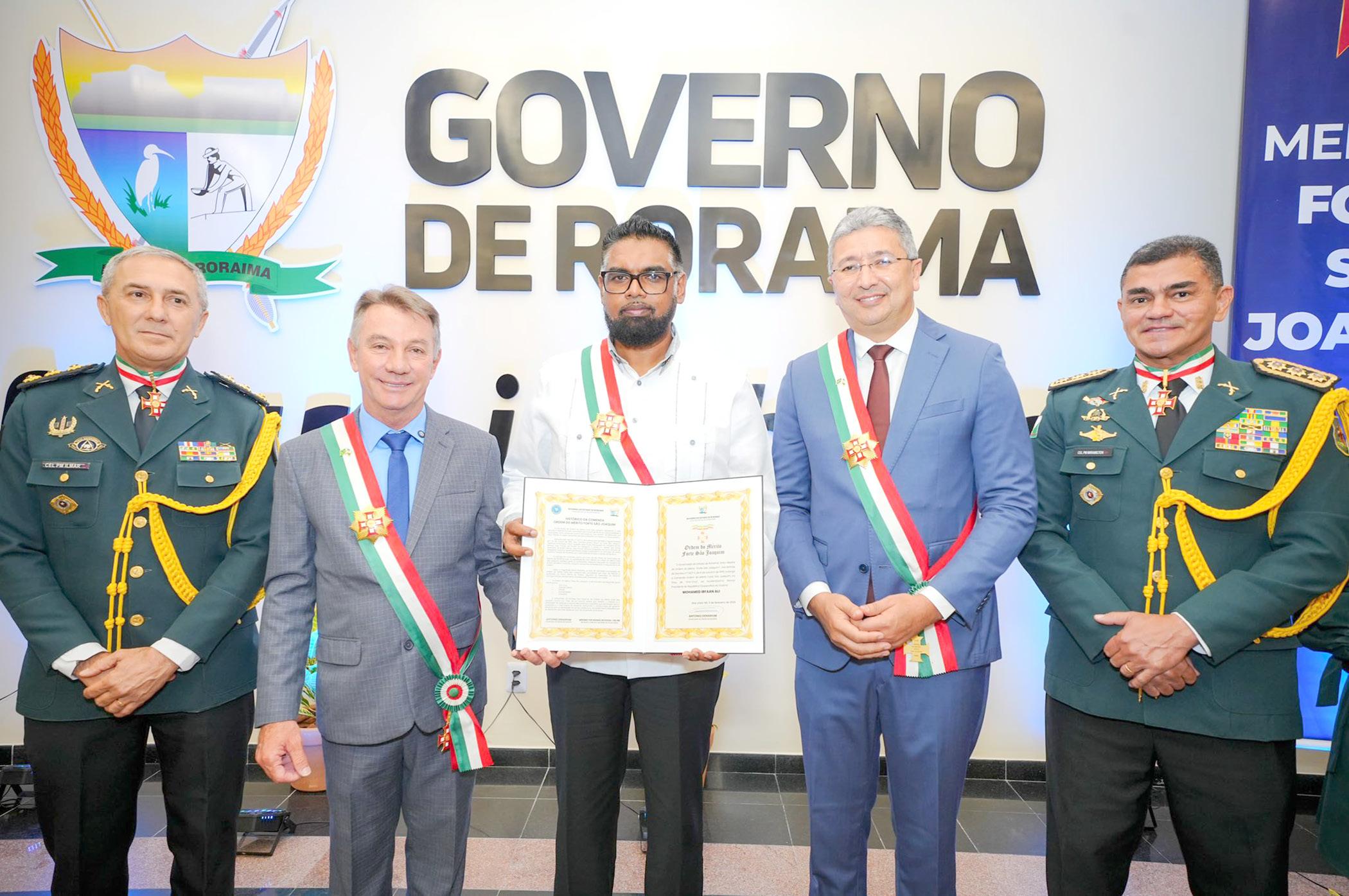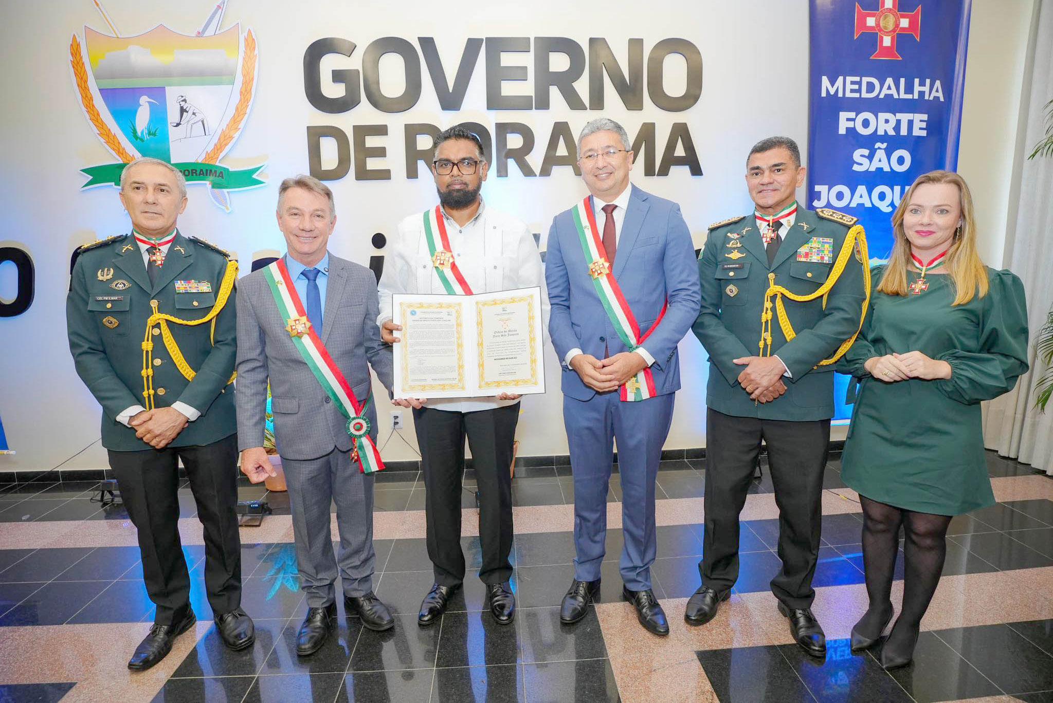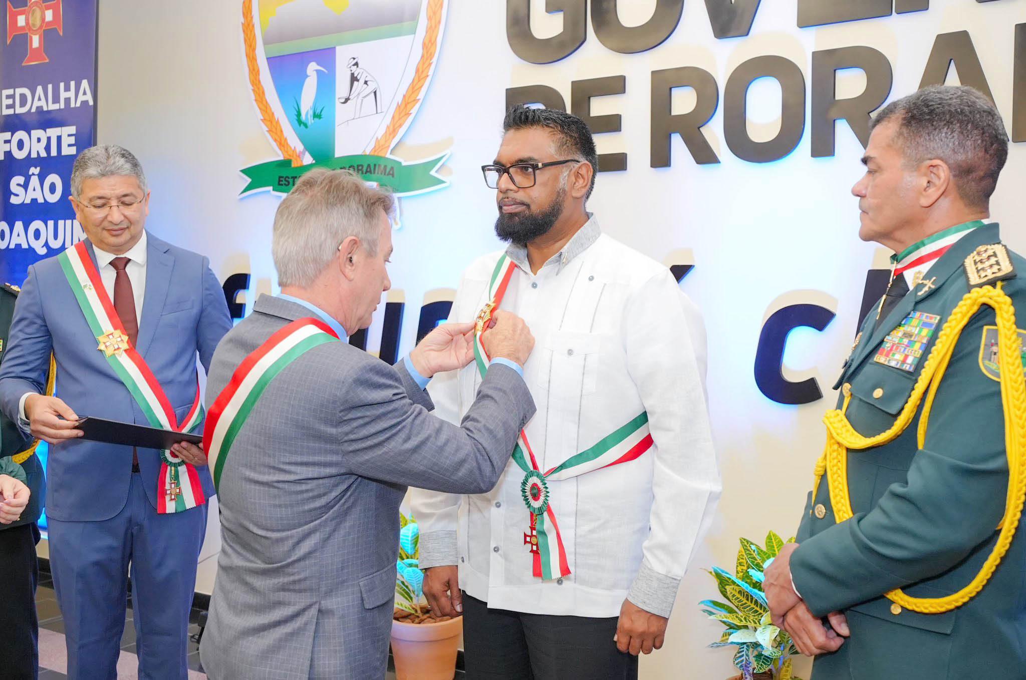 Along with bilateral discussions with the Governor of the State of Roraima, Antonio Denarium, and two Brazilian senators, the President was also conferred with the State of Roraima’s highest award—the Medalha Forte São Joaquim (Order of Merit Fort São Joaquim), in Boa Vista, the capital of Roraima, Brazil.