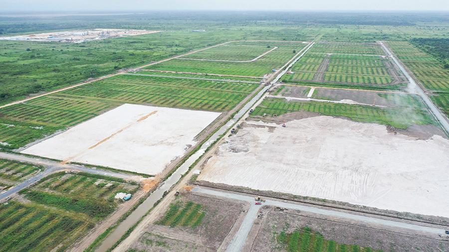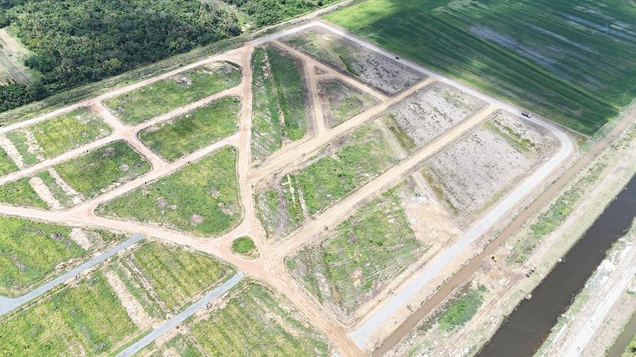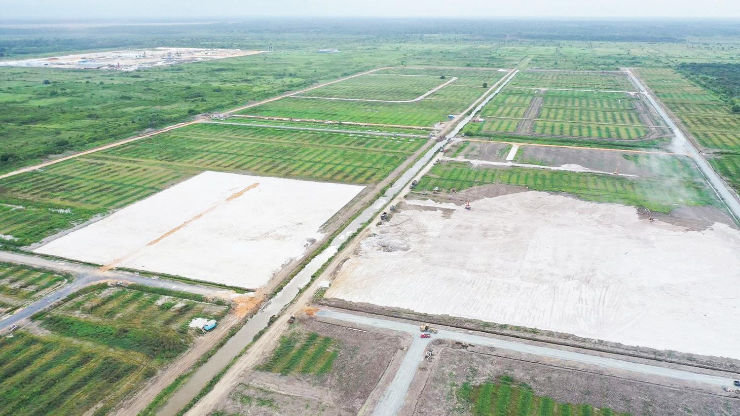 Drone view of the Wales Commercial Zone on the West Bank of Demerara, where $4.9 billion in infrastructural works are advancing across more than 400 acres to create a truck park and dedicated auto zone to support expanding commercial activity within the Wales Housing Development. [Central Housing & Planning Authority photo]