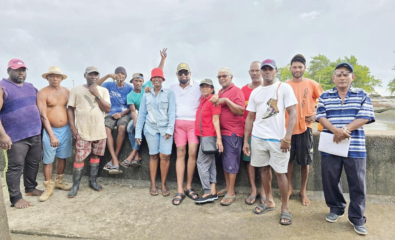 President Dr Irfaan Ali engages fisherfolk at the Leonora Outfall, on Saturday morning, listening to concerns within the sector and reaffirming the Government’s commitment to work with stakeholders to strengthen the fishing industry and support the livelihoods of those who depend on it. [ Office of the President]
