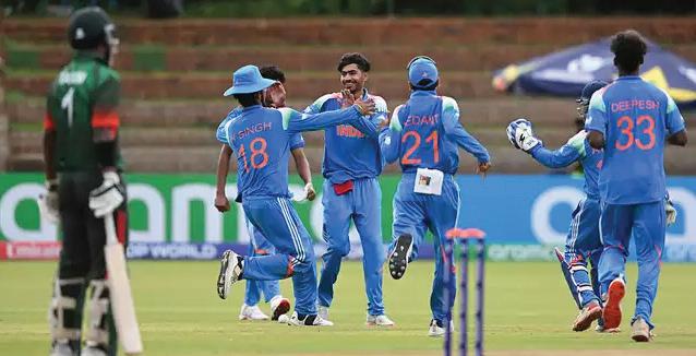 Batting first, India got off to a disastrous start losing two wickets in the third over. Vaibhav Suryavanshi was unperturbed and kept finding the boundary regularly in usual fashion with Malhotra at the other end biding his time. Before the end of the powerplay, Bangladesh also saw the back of Malhotra to remain on top.