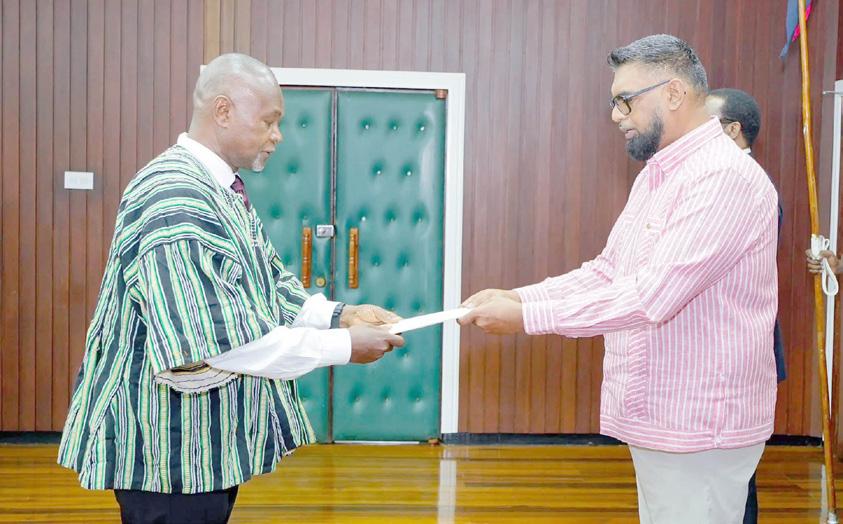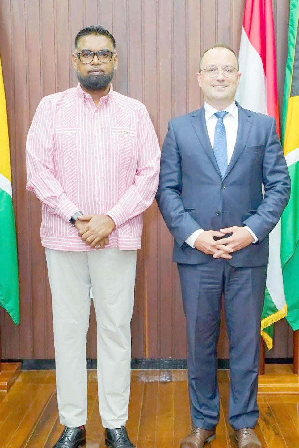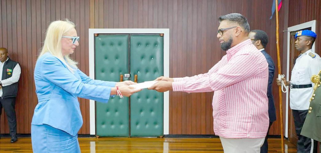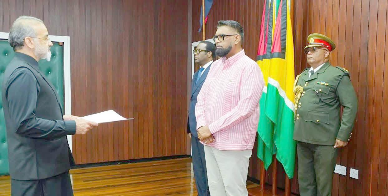 President, Dr Irfaan Ali received Letters of Credence from the diplomatic representatives of a number of countries as we continue to strengthen Guyana’s growing global partnerships. He welcomed Non-Resident Ambassadors Miklós Tamás Halmai of Hungary; Manuel Eduardo Dos Santos e Silva Bravo of the Republic of Angola; Eleonora Dimitrova of the Republic of Bulgaria; as well as Non-Resident High Commissioners Murad Ashraf Janjua of the Islamic Republic of Pakistan and Nii Amasah Namoale of the Republic of Ghana. These engagements reflect Guyana’s continued commitment to deepening diplomatic relations, expanding co-operation, and creating new opportunities for citizens (Office of the President)