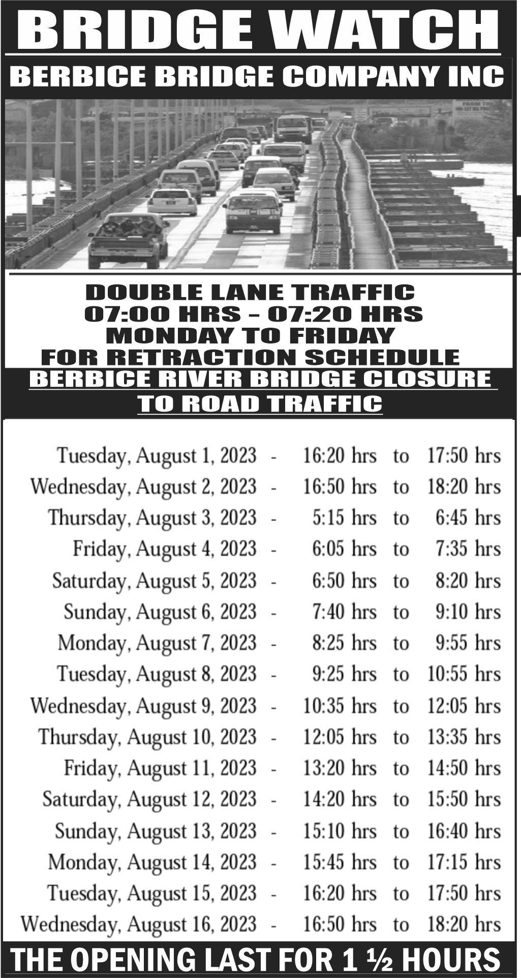 Sunday’s tournament will commence with a double-header at the Wisburg Secondary School ground.