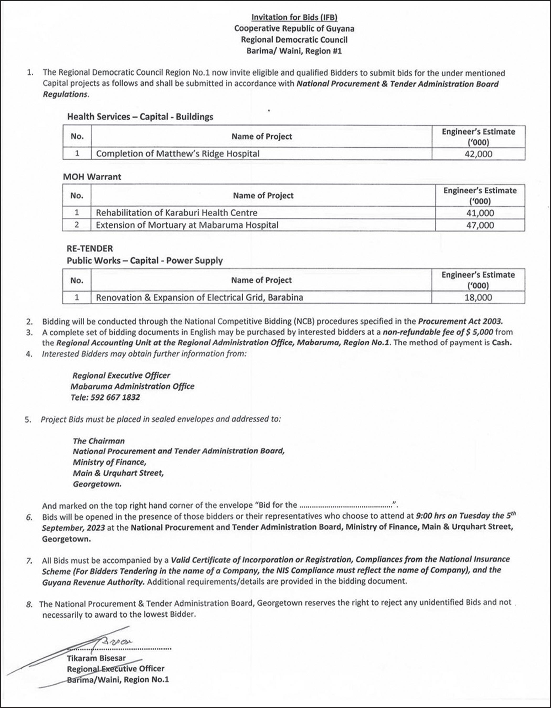 However, because this did not meet the government’s expectations, both were invited to resubmit their bids to which El-Batrawi’s company X, LLC then submitted the US$90 million bid while the Integrated Group Guyana Inc submitted a US$86.1 million bid