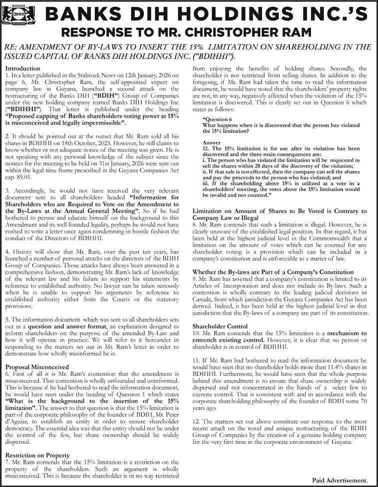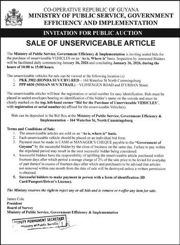 SENIOR Minister in the Office of the President with Responsibility for Finance, The Honourable Dr. Ashni Singh, on Monday announced that Budget 2026 will be presented to the National Assembly on January 26, 2026.