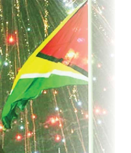 AndastheGoldenArrowhead,Guyana’snationalflagwashoisted forthe56thtimeincommemorationofthecountry becomingarepublic,the President’scallfornational prideresonatedbeyond thefestivities.