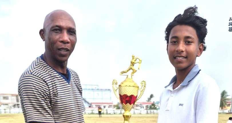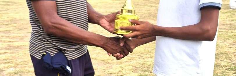 EastBank’sskipperJoshuaBudramgetshisMOM TrophyfromformerWestIndiesTestbatter AsaadFudadin