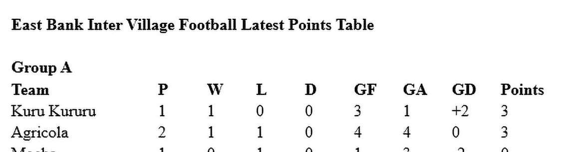 the pointlessTimehri. It’salltoplayforastheonly two villages that have qualified for the quarterfinals are Group C’s Grove and Upper Soesdyke. The final group