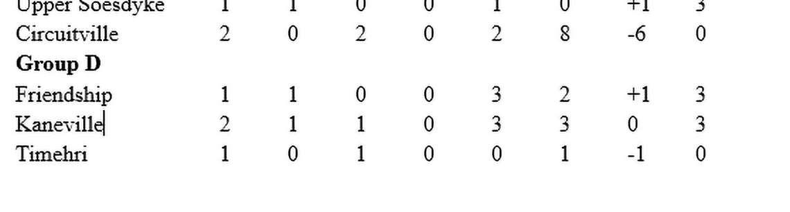 Sunday’sopeninggame,a group D contest saw Friendship contesting their first match, halting the winning streakofKanevillewhichhad downedTimehriintheirfirst matchaweekbefore,beating them3-2.