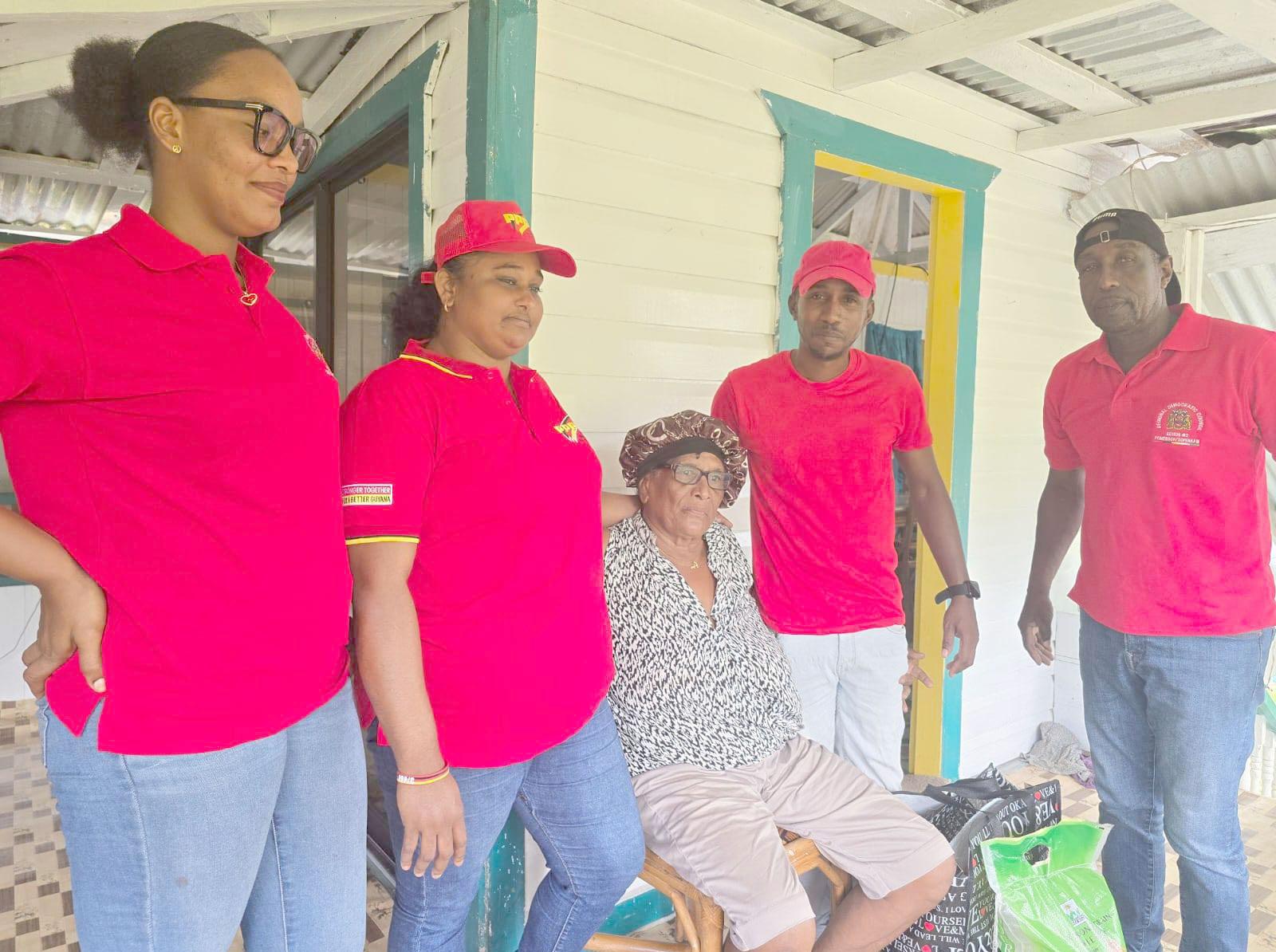 On Wednesday, the former parliamentarian joined a team from the PPP/C to give assistance to a 72-yearold pensioner of the Lower Pomeroon River who tragically lost her home recently.