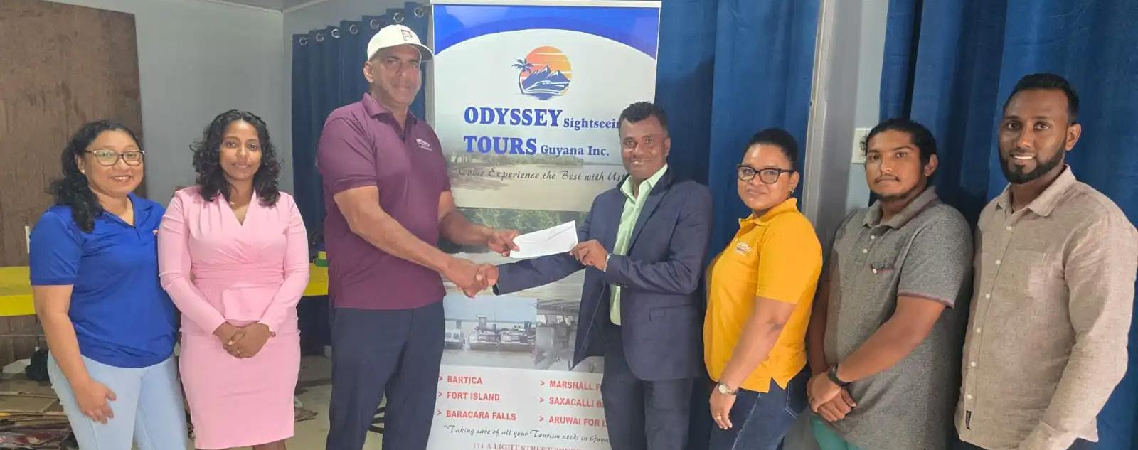 At a briefing held at the sponsor's North Road headquarters in Georgetown, Feroze Barakat, Managing Director of Odyssey Sightseeing Tours Guyana Inc., officially handed over the