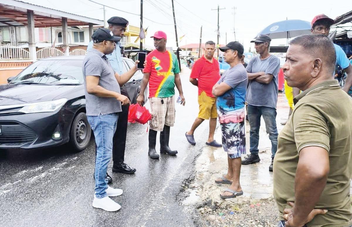 Minister of Labour and Manpower Planning, Keoma Griffith, on the ground in East La Penitence engaging residents affected by heavy rainfall